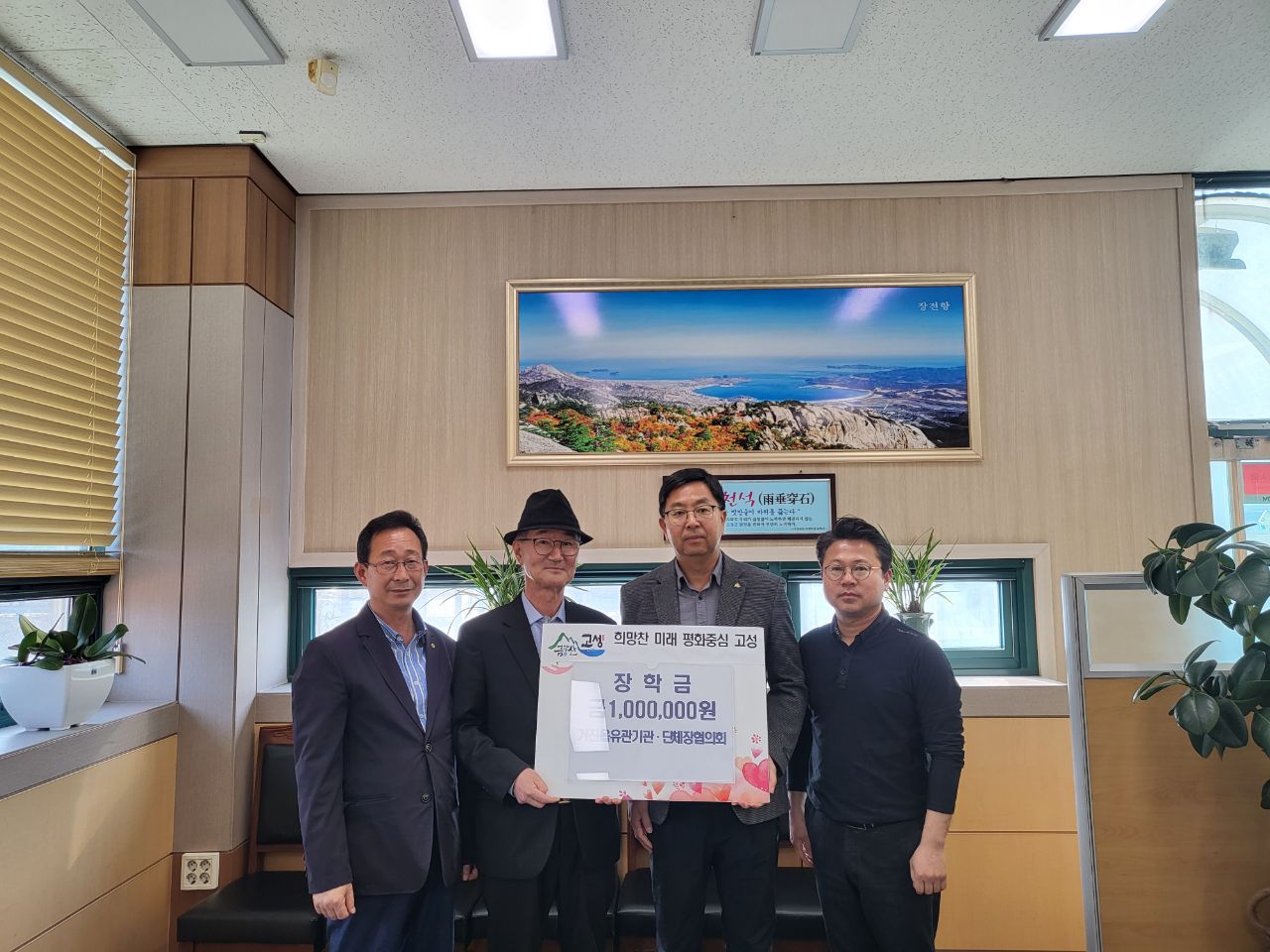 [강원사회복지신문 김종한 기자]=고성군 거진읍 유관기관·단체장협의회(회장 윤형락)는 지난 3월 22일 거진읍 장학재단(이사장 신영균)에 지역인재 육성을 위한 장학금 100만원을 기탁하였다.
