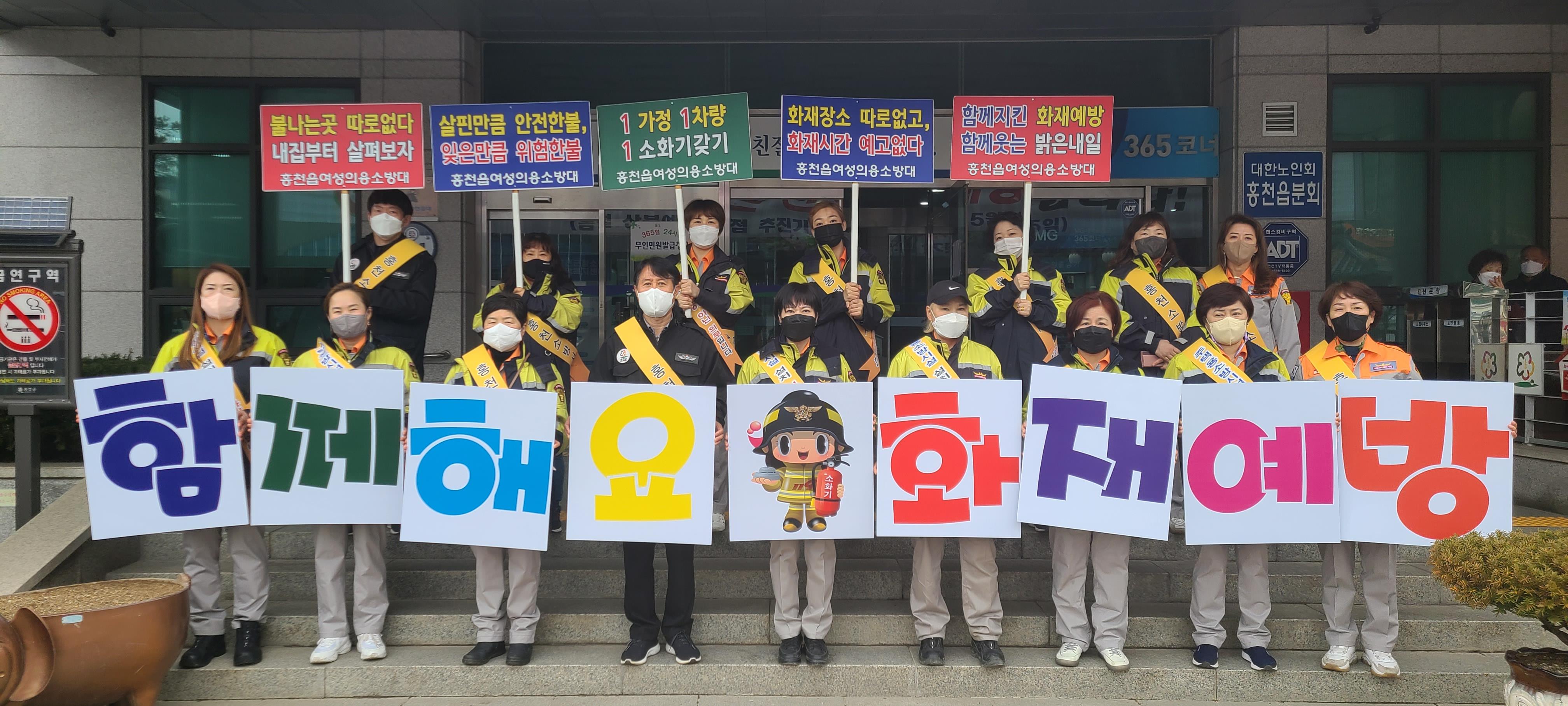 [강원사회복지신문 홍기한 기자]=홍천읍 여성의용소방대(대장 박홍숙)는 지난 3월 14일 산불예방 결의대회를 개최했다. 여성의용소방대 회원 30여명은 홍천읍 행정복지센터 및 홍천터미널에서 봄철 농산물 폐기물 소각 및 대형 산불 위험 예방을 홍보했다.