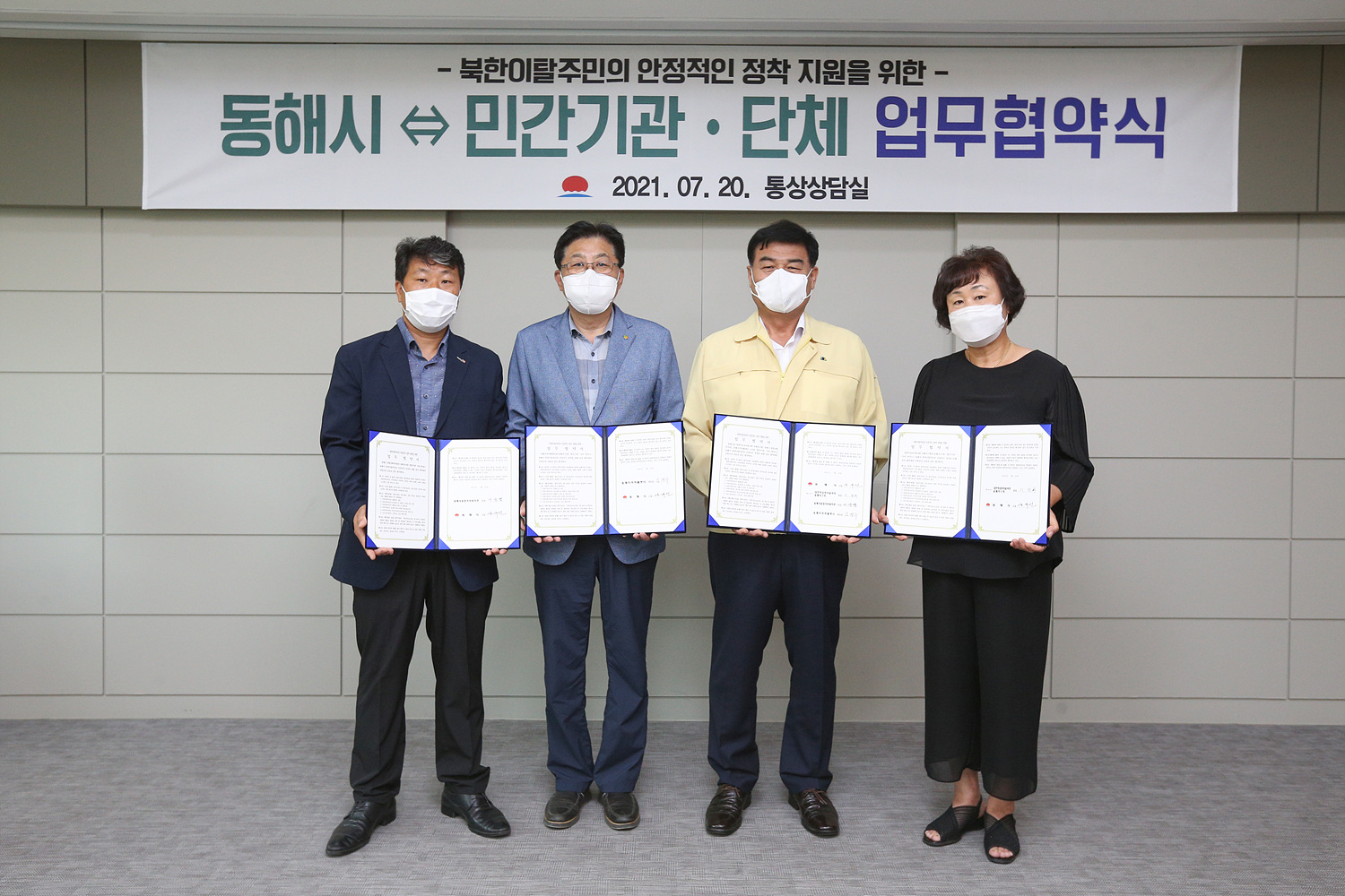 [강원사회복지신문 김종한 기자]=동해시(시장 심규언)는 지난 7월 20일 11시 시청 통상상담실에서 북한 이탈주민의 안정적 정착지원을 위한 민간기관·단체와 업무협약을 체결했다. 이날 협약식은 심규언 동해시장을 비롯해, 이선희 대한적십자사봉사회 동해지구회 회장, 서순영 동해시 종합사회복지관 관장, 김경수 동해지역...