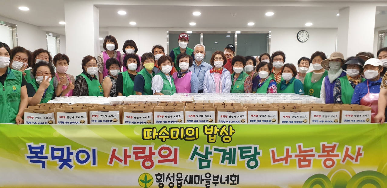 [강원사회복지신문 홍기한 기자]=횡성읍 새마을 부녀회(회장 함영숙)가 지난 7월 21일, 횡성읍주민자치센터에서 삼계탕을 만들어 관내 저소득 100가구에 전달하였다. 이번 행사는 중복을 맞이하여 관내 저소득 어르신들이 여름철을 건강하고 시원하게 보내실 수 있도록 원기회복을 돕고자 마련되었다. 새마을 부녀회 회원 10...