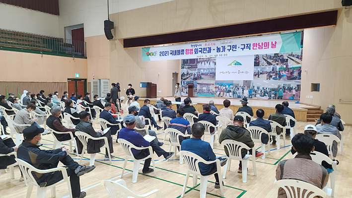 [강원사회복지신문 홍기한 기자]=횡성군(군수 장신상)은 7월 1일, 오후 1시 둔내면 실내체육관에서 '2021 농가와 외국인근로자 만남의 날'을 운영한다고 밝혔다. 코로나19 장기화로 농업 분야 인력난이 심화됨에 따라 법무부는 지난 3월부터 국내 체류 중이나 취업을 할 수 없는 외국인들이 계절 근로에 참여할 수 있도록 취...