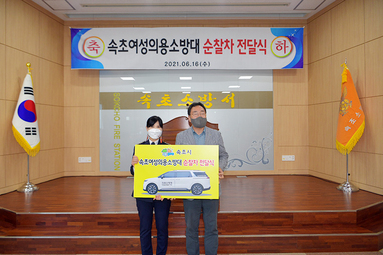 연말까지 3대 지원하여 시민 안전 향상 기대 [강원사회복지신문 김종한 기자]=속초시가 각종 재난현장에서 재해복구지원 등 다양한 활동을 하고 있는 속초시여성의용소방대(대장 이명순)에 순찰차량을 전달했다. 지난 6월 16일 속초소방서에서 열린 전달식에는 김철수 속초시장을 비롯한 신선익 속초시의회 의장, 김준섭 도위...