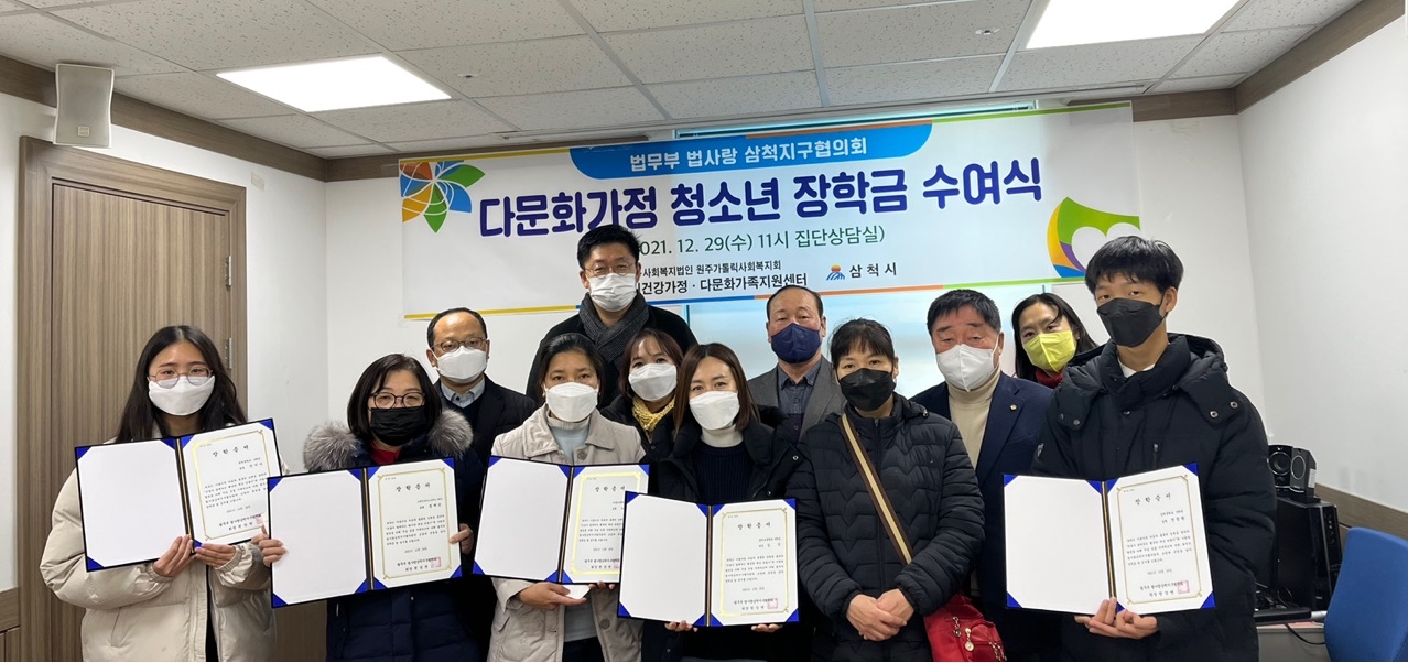 [강원사회복지신문 김종한 기자]=법무부 법사랑 삼척지구협의회는 지난 12월 29일 교육 소외극복 및 개인의 성장기회를 지원하기 위해 어려운 가정형편에도 불구하고 학업성적이 우수한 청소년을 대상으로 '다문화가정 청소년 장학금 수여식'을 개최했다. 이번 수여식에서 삼척시 건강가정·다문화가족지원센터에서 추천한 다...