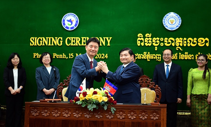 화천군과 캄보디아의 공공형 외국인 계절 근로자 업무 협약식이 지난 3월 15일 캄보디아 프놈펜 노동직업훈련부 청사에서 최문순 군수, 행쑤어 장관 등이 참석한 가운데 열렸다.
