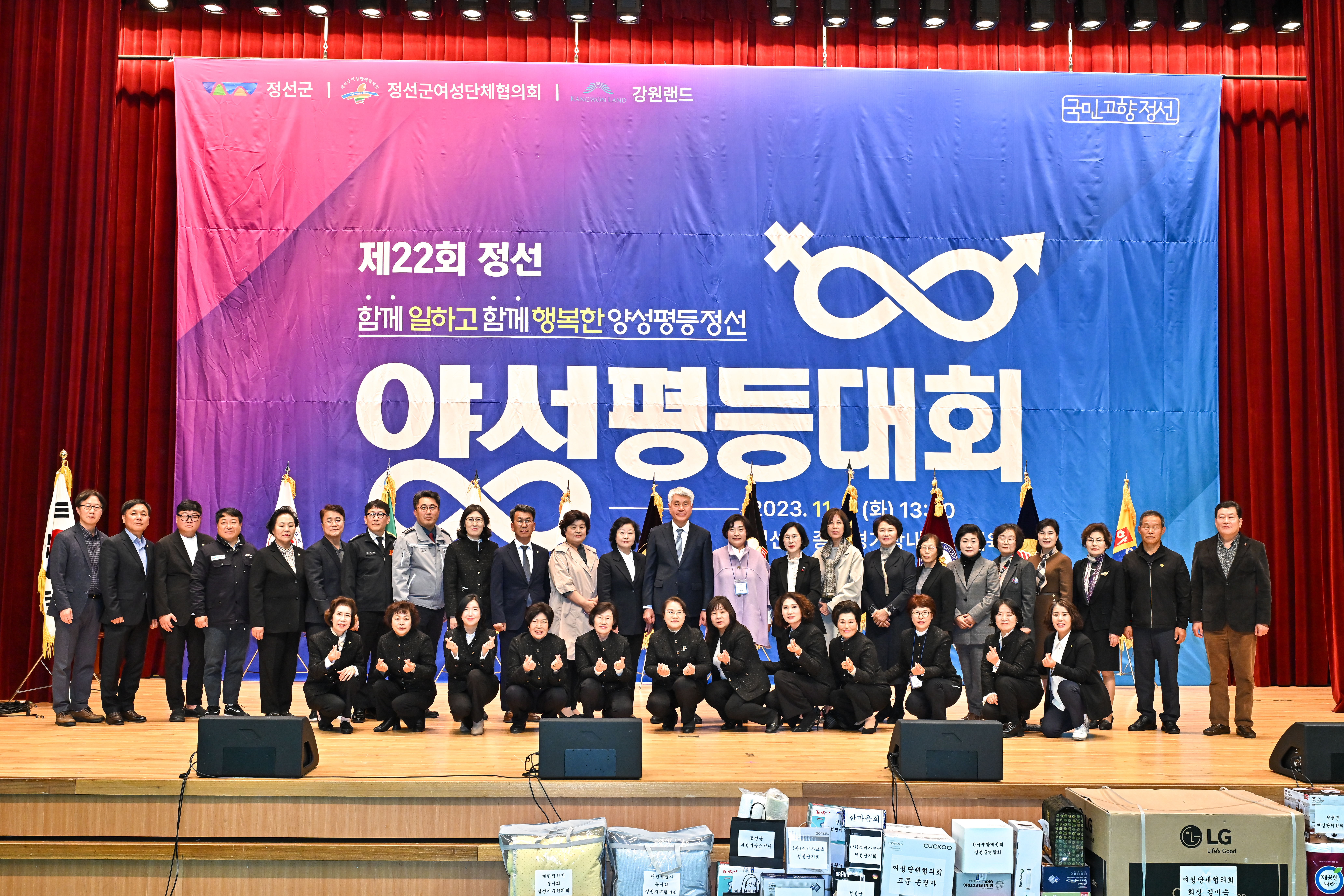 정선군(군수 최승준)은 지난 11월 7일 정선군 종합경기장 실내체육관에서 '함께 일하고, 함께 행복한 양성평등정선'이라는 주제로 제22회 정선양성평등대회를 개최했다. 정선군여성단체협의회(회장 김미숙)가 주관하는 이번 양성평등대회는 사회봉사와 지역사회 발전에 선도적 역할을 담당하는 여성지도자와 자원봉사자의 역...