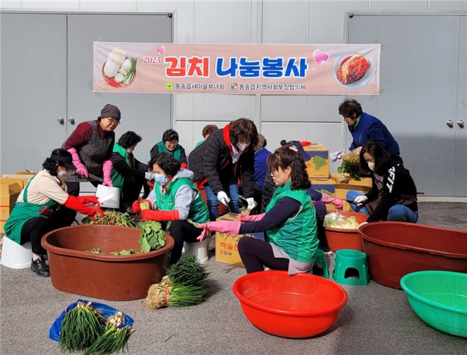[강원사회복지신문 이정환 기자]=철원군은 최근 동송읍새마을부녀회(회장 신순희)가 관내 저소득층에게 나눠줄 김치나눔봉사 행사를 가졌다고 지난 4월 17일 밝혔다. 이 행사는 매년 4월부터 동송읍 행정복지센터에서 김치재료를 제공하고, 새마을 부녀회 회원 20여명이 직접 담근 계절별 김치를 독거어르신 등 취약계층 가구...