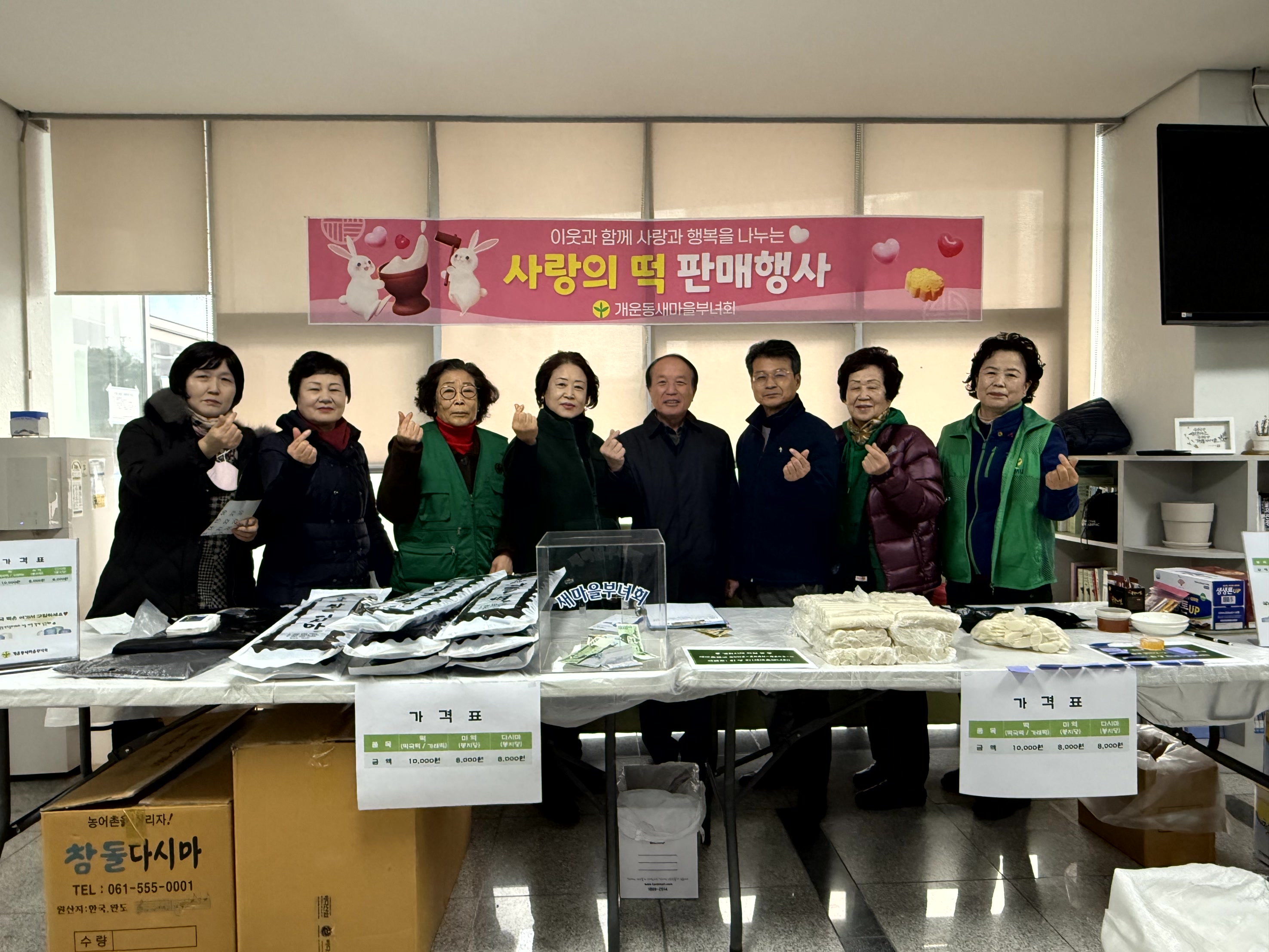 원주시 개운동 새마을부녀회(회장 최상희)는 지난 1월 20일 개운동 행정복지센터 1층에서 불우이웃 돕기 기금 마련을 위한 ‘사랑의 떡 판매 행사’를 실시했다. 최상희 부녀회장은 “새마을 떡 판매 행사 수익금은 앞으로 관내 어려운 이웃돕기를 위한 사랑의 반찬 나눔 봉사, 경로잔치 등에 사용될 예정”이라며, “행사에...