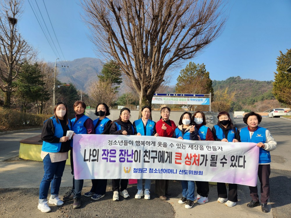 [강원사회복지신문 이정환 기자]=철원군청소년어머니선도위원회(회장 이명희)는 지난 3월 29일 철원여자중·고등학교앞에서 학교폭력 없는 안전한 학교를 만들기 위해 학생들이 등교하는 오전 7시 20분부터 학생들에게 물티슈를 나눠주며, 학교폭력예방캠페인을 진행하였다.