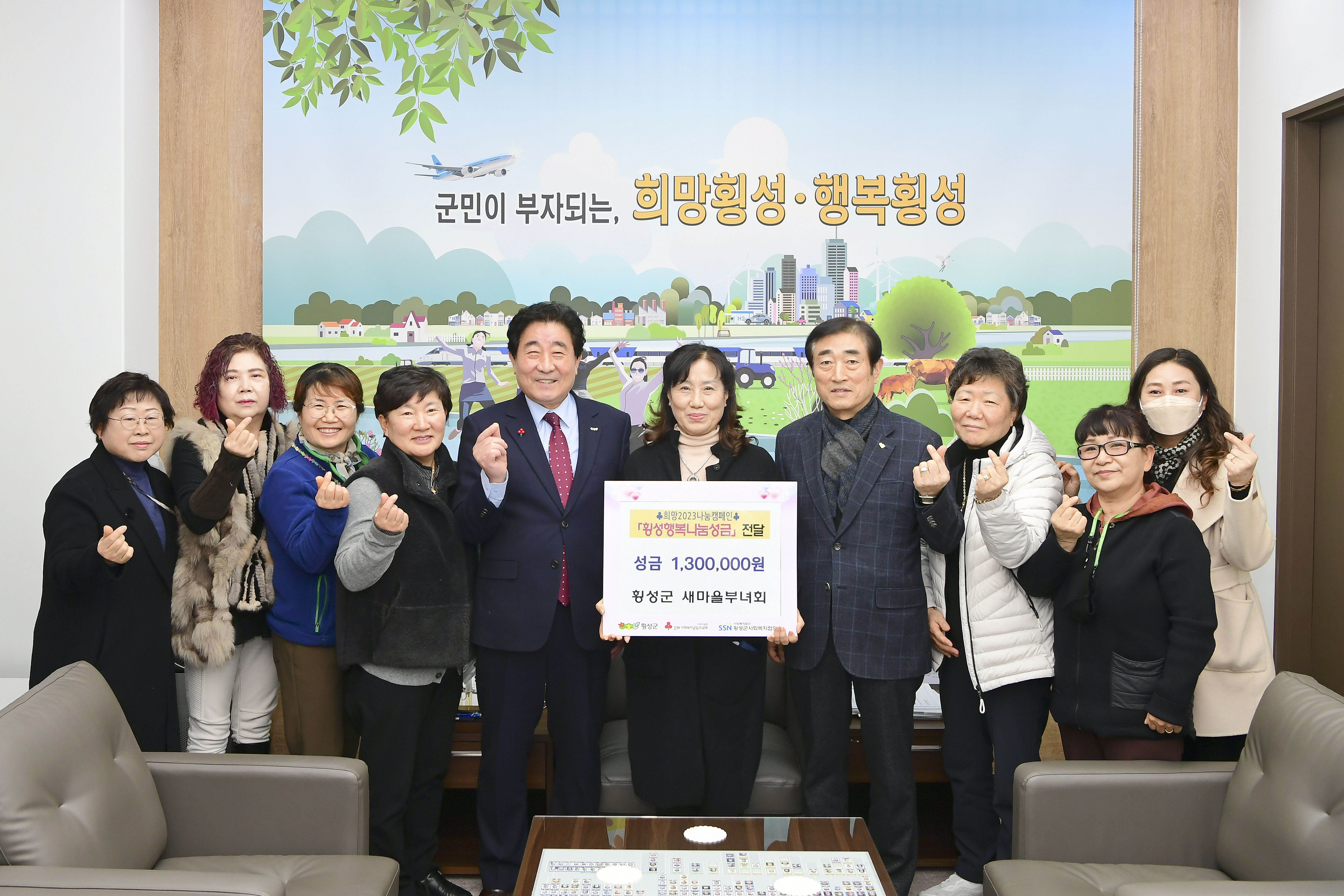 [강원사회복지신문 홍기한 기자]=횡성군 새마을부녀회(회장 원선자)는 지난 2월 7일 횡성군청 군수집무실을 방문해 횡성행복나눔성금 1,300천원을 기탁했다.