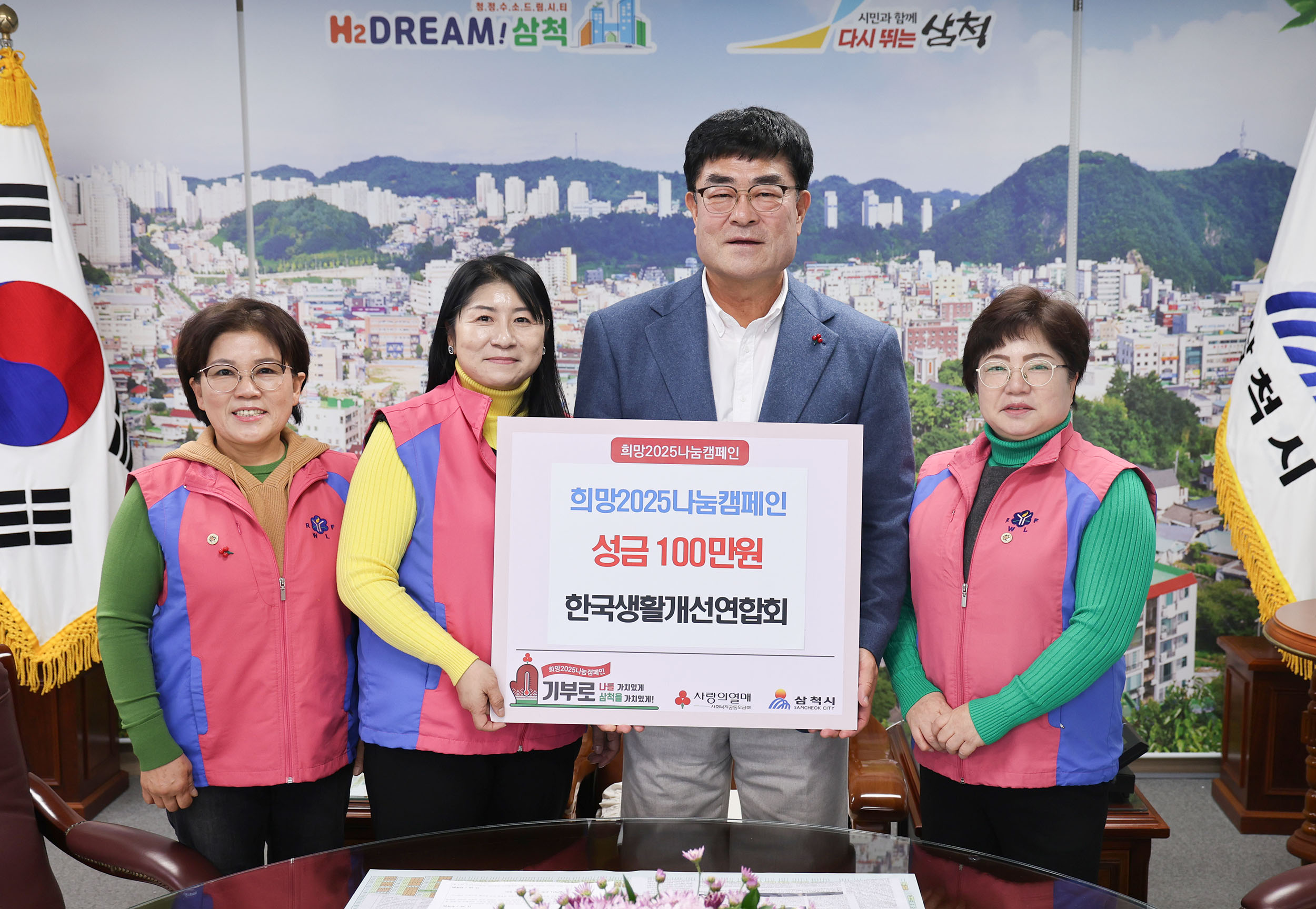 한국생활개선회 삼척시연합회(회장 권영희)가 삼척시 저소득층 삶의 질 향상을 위해 1월 13일 이웃돕기 성금으로 100만원을 기탁했다. 이번 ‘저소득층 이웃 돕기’ 성금은 지난해 연합회원 309명과 함께 봉사활동의 일환으로 쌀 소비촉진을 위한 쌀국수 판매, 새우젓갈 판매, 국화전시회 농산물 판매 부스 운영 등을 통하여...