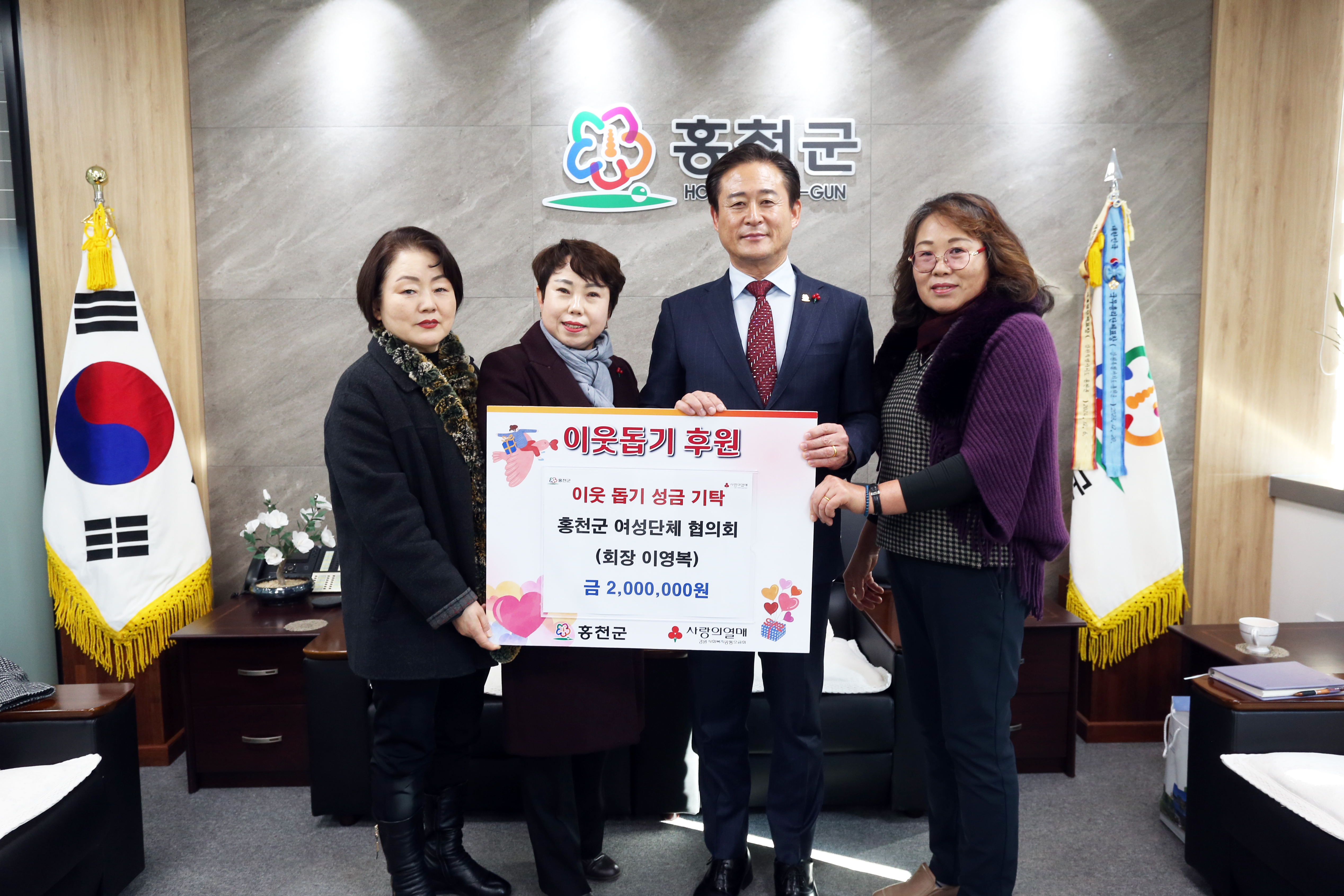 홍천군 여성단체 협의회(회장 이영복)는 1월 10일 홍천군청을 방문하여 각각 어려운 이웃돕기 성금 200만 원을 기탁했다. 이영복 회장은 “2025년 새해를 맞아 홍천군의 어려운 분들에게 도움이 되고자 성금을 기탁하게 되었다”라며, “성금이 도움이 필요한 곳에 잘 전달되어 행복한 새해를 보내실 수 있기를 진심으로 바란...