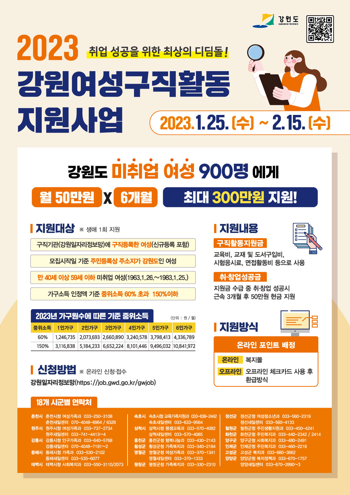 [강원사회복지신문 서은진 기자]=선착순 200명 모집, 50만 원씩 6개월간 총 300만 원 지원 2월 15일까지 강원일자리정보망에서 신청 원주시는 임신, 출산, 육아, 가족 돌봄 등으로 경력이 단절된 여성들의 경제활동 참여율을 높이고자 '여성구직활동 지원 사업' 신청자를 모집한다고 밝혔다. 선착순 200명을 모집하며, 대상자...
