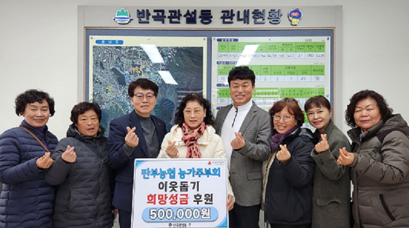 [강원사회복지신문 서은진 기자]=원주 판부농협(조합장 배경수) 농가주부회(회장 최금선)는 지난 12월 15일 관내 취약계층에게 전달해달라며 원주시 판부면 및 반곡관설동 행정복지센터에 '희망2023나눔캠페인'성금 50만 원을 각각 기탁했다. 이번 성금은 농가주부회 회원들이 지난달 10일 판부농협 하나로마트 앞에서 손두부...