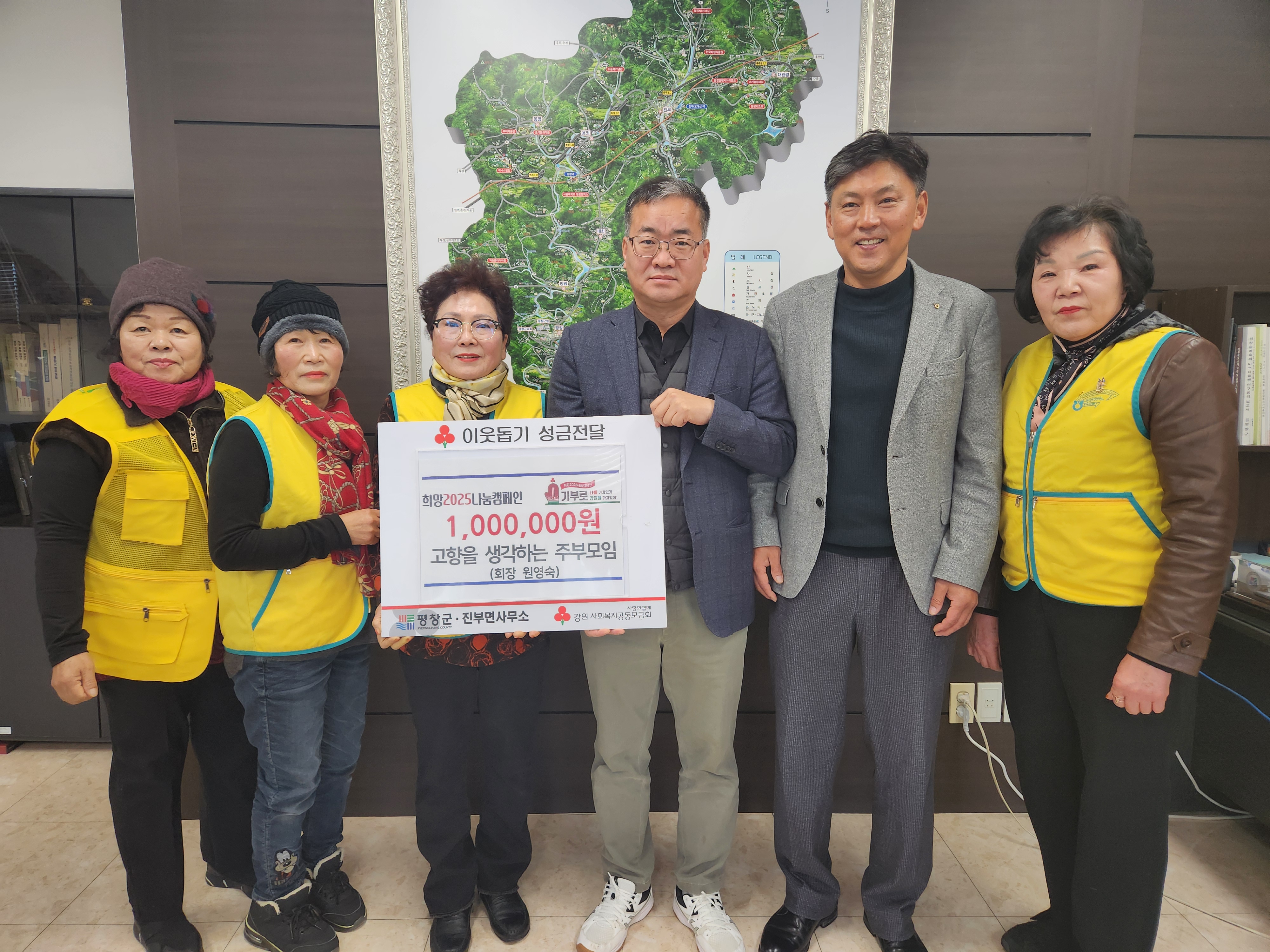 춘천시 동내면 새마을부녀회(회장 문교순)는 1월 9일 강원사회복지공동모금회에 성금 100만 원을 기부했다.