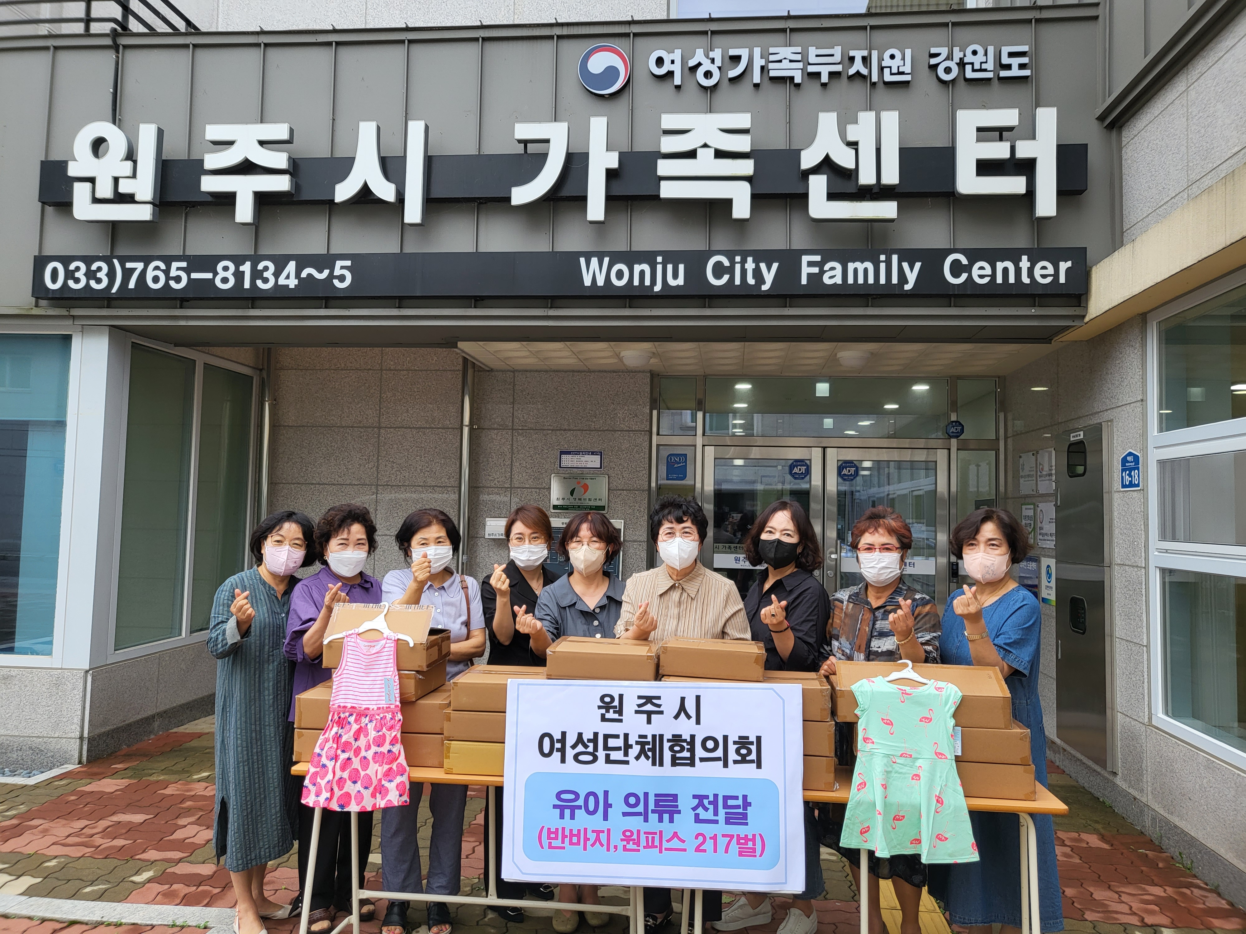 [강원사회복지신문 이정환 기자]=원주시여성단체협의회(회장 원은향)는 지난 8월 10일 원주시가족센터(센터장 남궁은임)에 지역사회 취약가정을 위한 아동의류 217벌을 전달했다. 원주시가족센터는 코로나19 재확산으로 어려움을 겪고 있는 다문화·한부모·저소득 가정 등 도움을 필요로 하는 취약가정을 대상으로 아동의류...