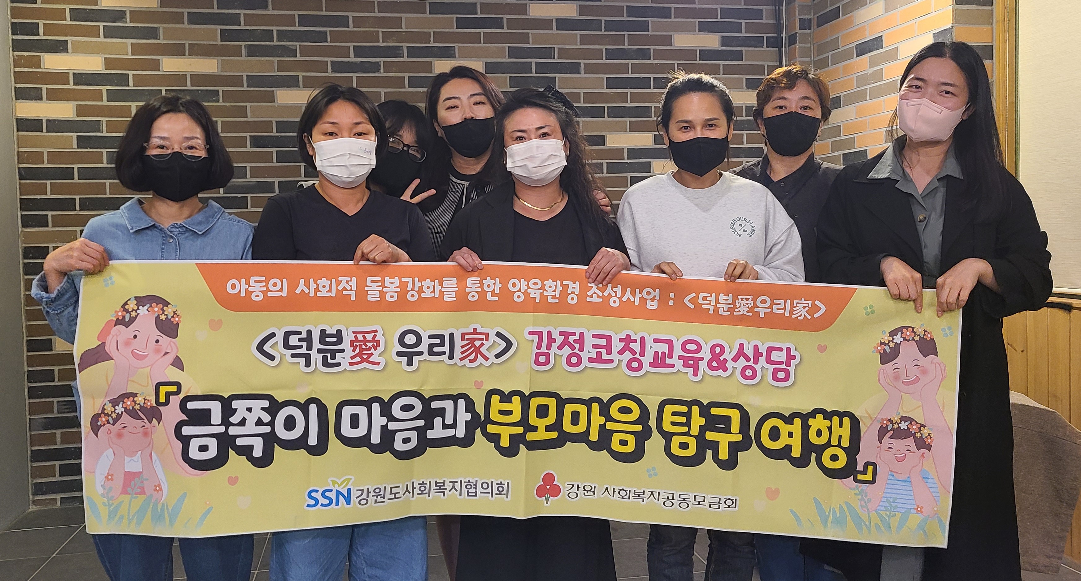 [강원사회복지신문 홍기한 기자]=강원도사회복지협의회(회장:홍기종)는 지난 4월 21일(목)부터 5월 19일(목)까지, 4회기에 걸쳐 춘천 관내 초등학생 자녀를 양육하고 있는 부모을 대상으로 '<덕분愛우리家> 감정코칭교육&상담 '금쪽이 마음과 부모마음 탐구 여행''을 진행하였다. <덕분愛우리家> 감정코칭교...