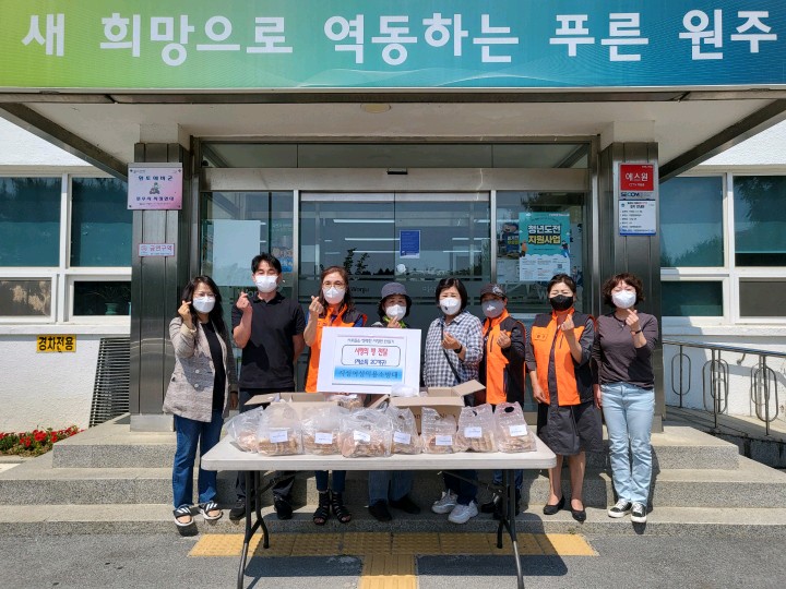 [강원사회복지신문 서은진 기자]=원주시 지정여성의용소방대(대장 박영미)는 지난 5월 17일 지정면 행정복지센터를 방문해 취약계층을 위한 '사랑의 빵'을 전달했다. 대원들이 직접 만든 빵은 원주시 지정면 취약계층 20가구에 전달될 예정이다.
