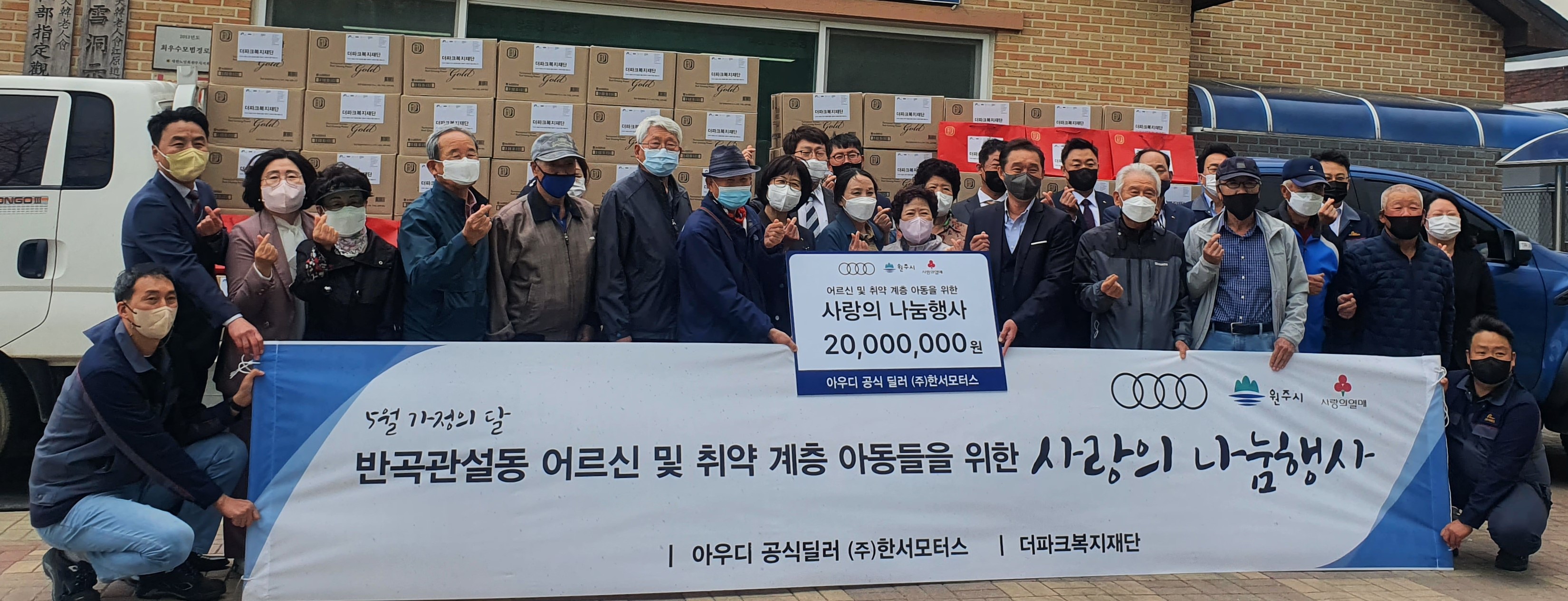 [강원사회복지신문 서은진 기자]=더파크복지재단(회장 박용환)은 가정의 달을 맞아 원주시 반곡관설동 어르신 및 취약계층 아동을 위해 지난 5월 2일 2,000만 원 상당의 홍삼과 스포츠용품(의류상품권)을 후원했다. 후원한 물품은 원주시 반곡관설동 지역사회보장협의체와 함께 5백여 명의 어르신에게 배부되며, 스포츠용품은...