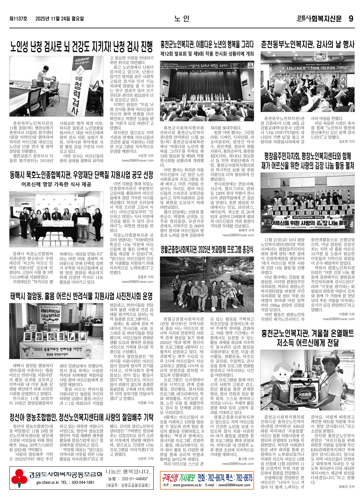 원주시 귀래면새마을문고회(회장 추난이)는 지난 6월 18일 귀래면 용암1리 마을회관에서 ‘어르신 발톱 관리’ 봉사활동을 전개했다. 어르신 발톱 관리 봉사활동은 네일샵을 운영하는 추난이 문고회장의 재능기부로 지난해 처음 시작됐다. 이날 문고회원과 봉사자들이 어르신 10명을 모시고 무좀 발톱 치료 및 각질 제거 등 ...