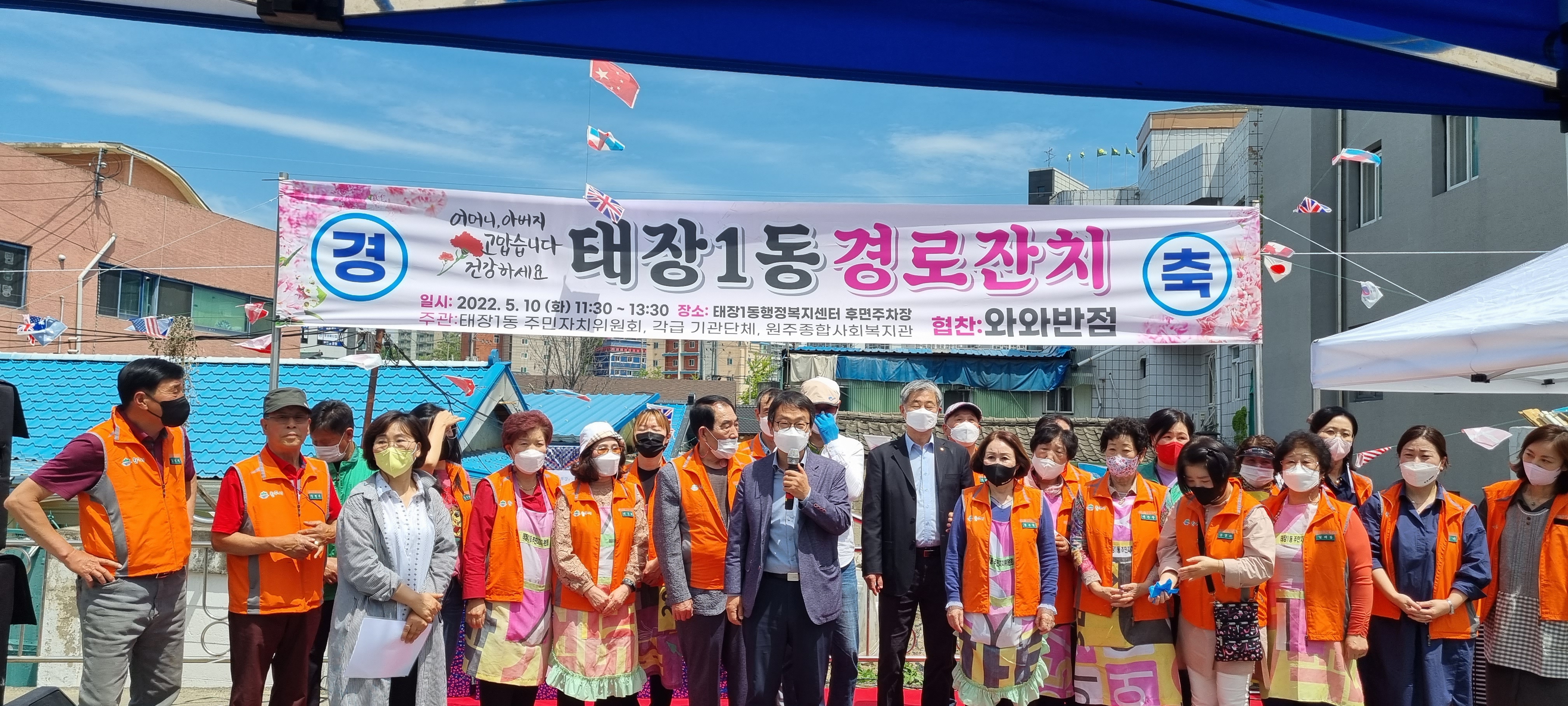 [강원사회복지신문 서은진 기자]=원주시 태장1동 주민자치위원회(위원장 고영식)는 지난 5월 10일, 어버이날을 맞아 태장1동 행정복지센터 주차장에서 경로잔치를 개최했다. 관내 기관·단체 후원으로 개최된 이번 행사는 통기타 연주, 난타, 한국무용 등 재능기부 공연으로 어르신들의 흥을 돋웠다. 또한, 포토존을 운영해...