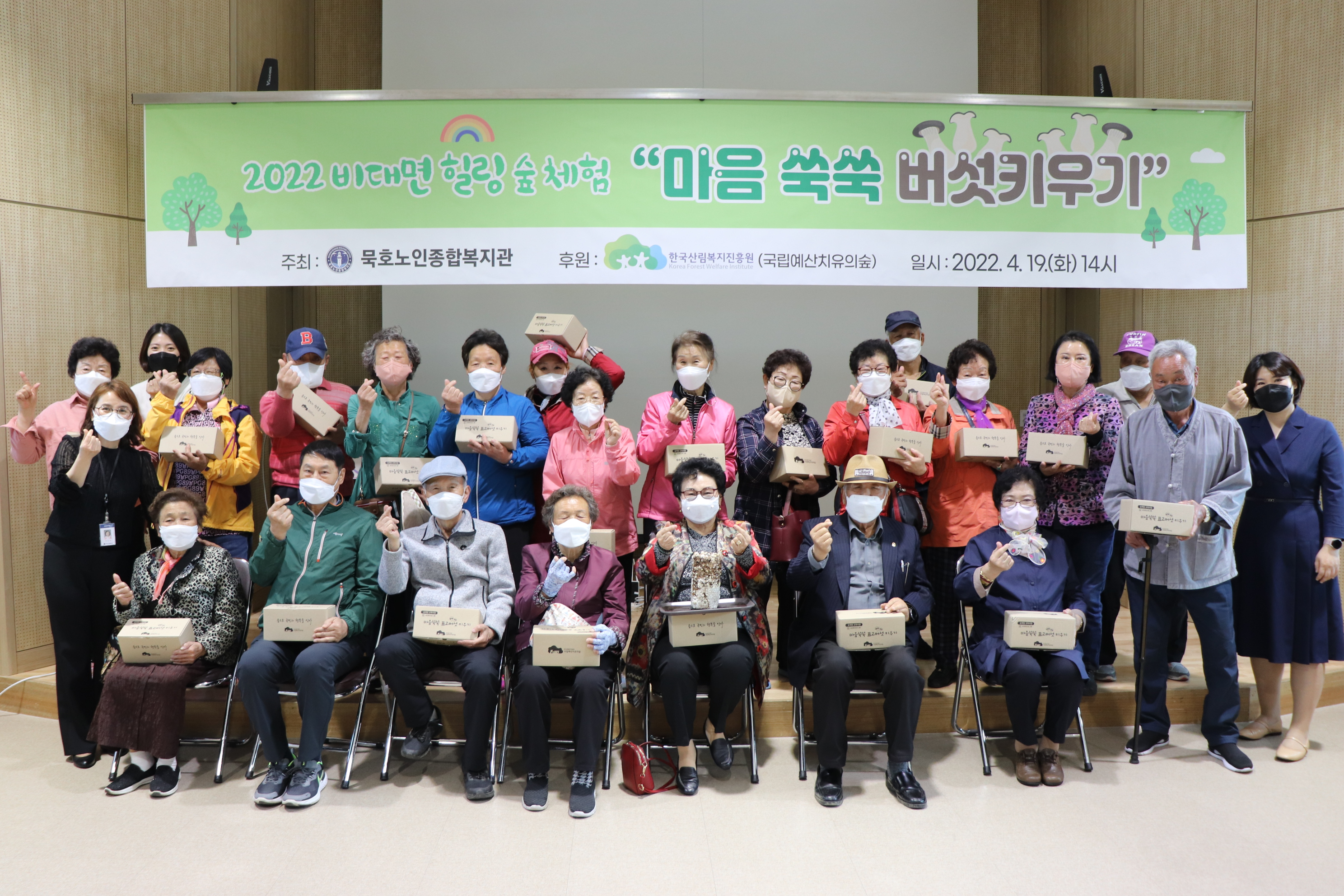 [강원사회복지신문 김종한 기자]='마음 쑥쑥 버섯키우기' 프로그램 실시 동해시 묵호노인종합복지관(관장 염규성)은 지난 4월 19일(화) 지역자원 및 세대통합사업(힐링 숲 체험)으로 어르신의 정서안정을 위해 '비대면 마음 쑥쑥 버섯키우기 프로그램'을 시작하였다. 이번 행사는 한국산림복지진흥원 산하 '국립예산치유의숲...