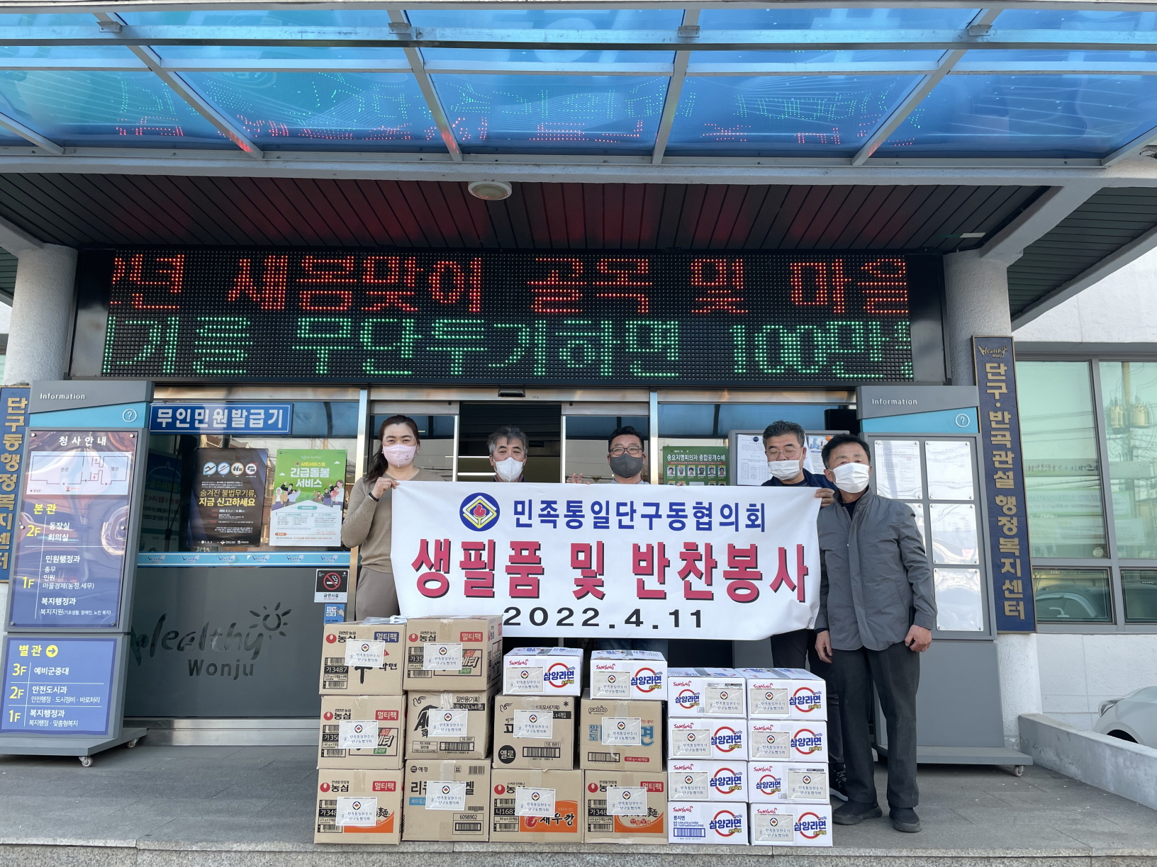 [강원사회복지신문 서은진 기자]=원주시 민족통일단구동협의회(회장 임연호)는 지난 4월 11일 저소득 독거노인 10가구에 즉석 사골곰탕과 육개장, 달걀, 통조림, 라면 등 간편식을 직접 전달했다. 민족통일단구동협의회는 지역의 소외된 독거노인 가구를 대상으로 매년 간편식 나눔 봉사를 진행하고 있다.