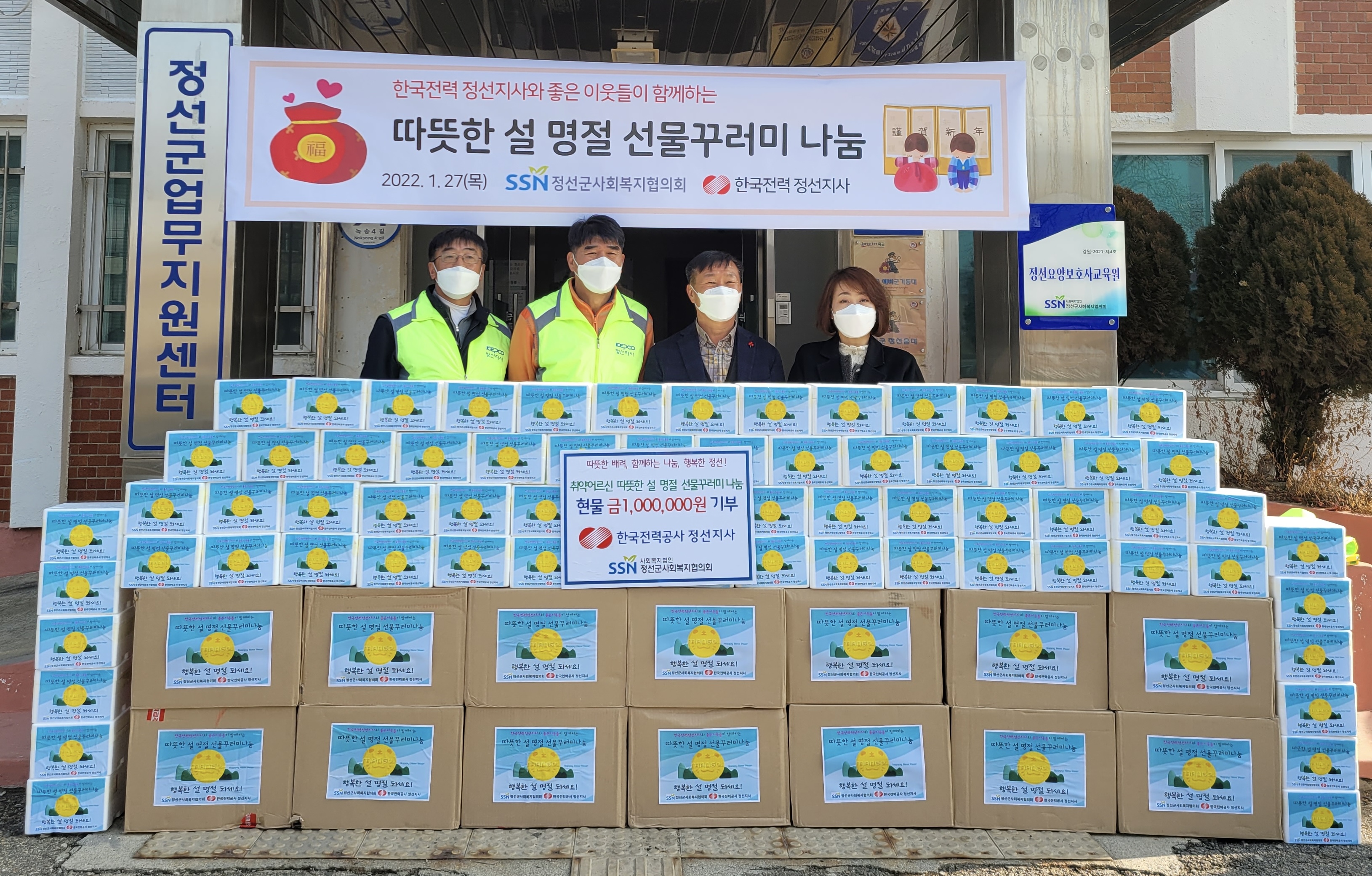 [강원사회복지신문 이정환 기자]=한국전력공사 정선지사(지사장 정문균)과 정선군사회복지협의회(회장 김진복)는 코로나19와 생활고로 어려움을 겪고 있는 취약 어르신 200가구에 선물꾸러미(젓갈세트)를 지원하였다. 이번 지원은 코로나19로 쓸쓸한 설명절을 보내실 취약 어르신 가구에 따뜻한 사랑의 손길을 전하기 위해 한...