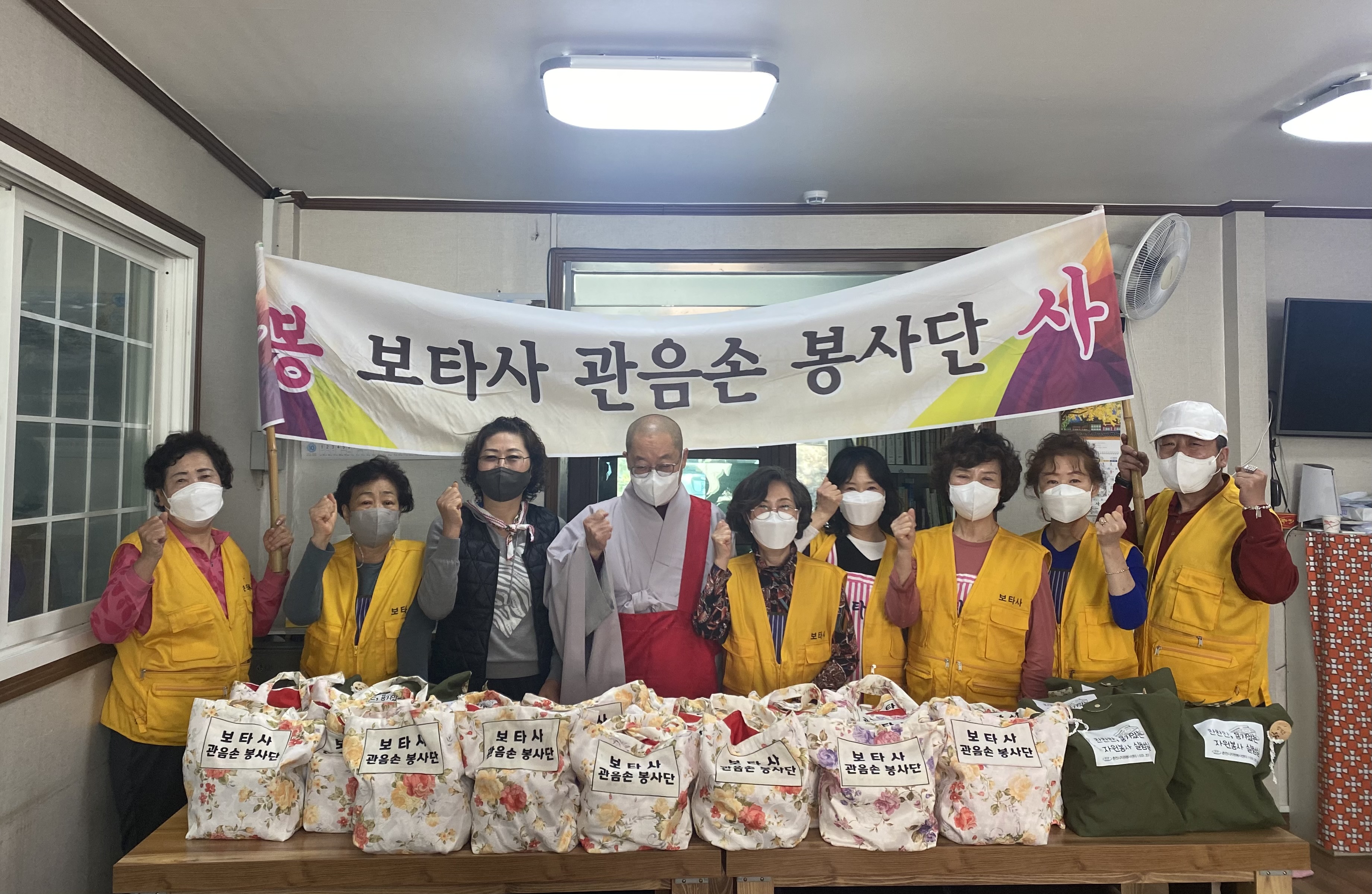 [강원사회복지신문 서은진 기자]=보타사 관음손 봉사단(단장:양영석, 주지:진철스님, 부단장:이옥희)은 지난 10월 28일 홀로 식사를 챙기기 어려운 춘천시 관내 독거어르신 및 중증장애인 39가구에 정성껏 만든 음식(고등어무조림, 꽈리고추멸치볶음, 어묵조림)을 전달했다.
