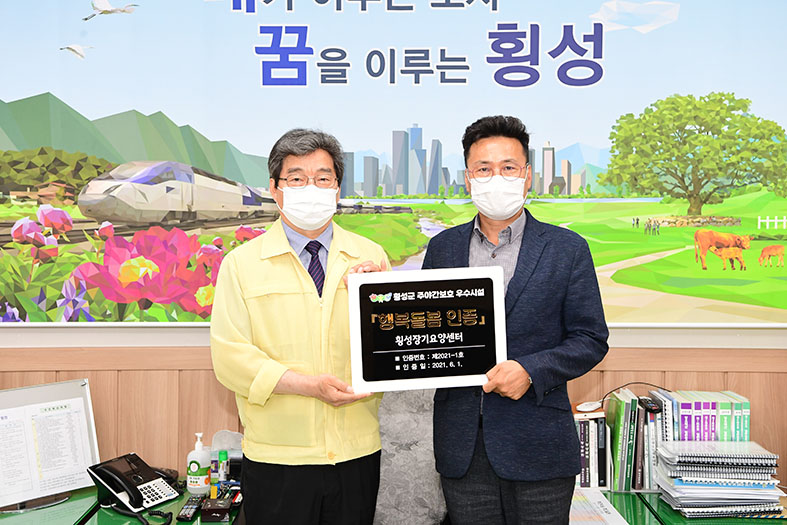 행복돌봄 인증시설 현판 전달식 지난 6월 15일 개최 [강원사회복지신문 홍기한 기자]=횡성군(군수 장신상)은 6월 1일부터 '행복돌봄 인증제도'의 시범 운영에 들어간 가운데 지난 6월 15일 오후 3시 30분, 부군수 집무실에서 인증현판 전달식을 개최했다. 현재, 장기요양기관을 통한 주야간보호서비스는 보통 09시에서 18시까...