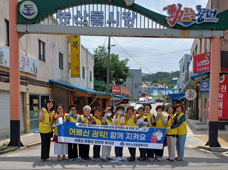 동해 묵호노인종합복지관(관장 염규성)은 지난 6월 24일(월) 복지관 및 북부지역 일대에 어르신 권익증진을 위한 캠페인을 펼쳤다. ‘2022년 보건복지부 노인학대 현황보고서’에 따르면, 전국노인보호전문기관에 접수된 노인학대 상담 및 신고건수는 19,552건으로 전년대비 15.1% 증가추세를 보이고 있다. 이에 묵호노인종합...