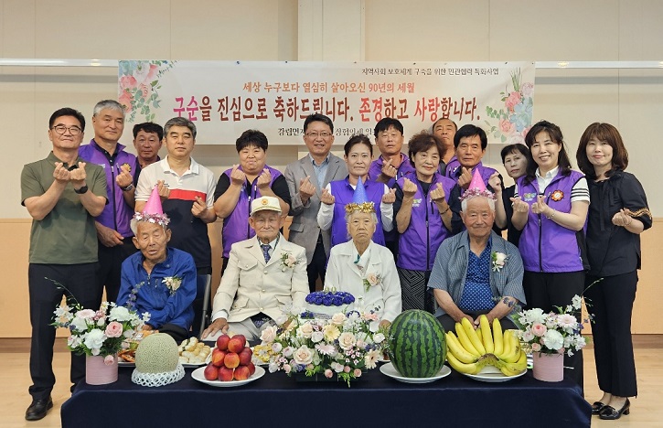 횡성군 강림면지역사회보장협의체(민간위원장 김성미)는 지난 6월 24일 각림건강복지센터에서 올해 구순을 맞은 어르신(34년생)들을 대상으로 ‘우리 동네 어르신 구순 생일 잔치’ 특화사업을 진행했다. 이날 잔치에는 지역의 구순을 맞은 어르신 9명 중 요양원 입소나 미거주로 참석이 어려운 대상을 제외한 3명과 가족을 ...