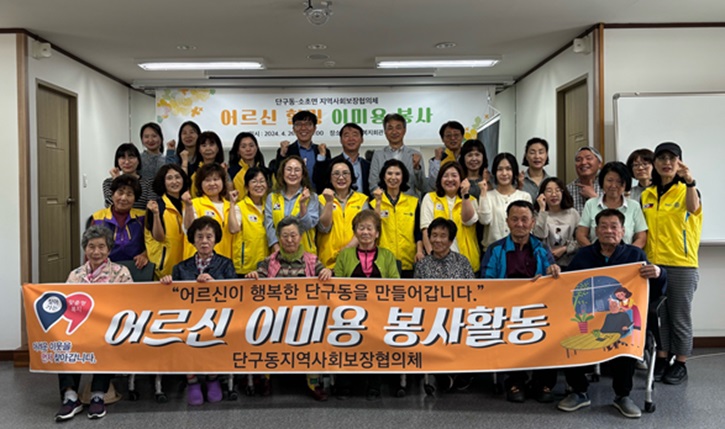 원주시 소초면지역사회보장협의체(이하 소초면협의체)와 단구동지역사회보장협의체(이하 단구동협의체)는 지난 4월 26일(금) ‘어르신 힐링 이미용 봉사’를 진행하며 따뜻한 마음을 나누었다. 이날 행사는‘소초면-단구동 지역사회보장협의체 업무협약’의 후속 행사로, 최민식 위원장 등 단구동협의체 위원 10여 명이 소초...