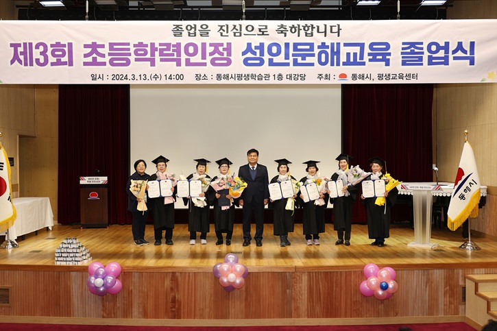 동해시(시장 심규언)가 배움의 기회를 놓친 늦깎이 어르신 학습자들을 대상으로 최근 평생교육센터에서 제3회 초등학력인정 문해교육 졸업식을 개최하여 화제를 모으고 있다. 학력인정 성인문해교육은 초등과정 프로그램 이수의 기회를 제공하여 의무교육에 해당하는 초등과정 학력을 인정받을 수 있는 제도로, 어르신들에게...