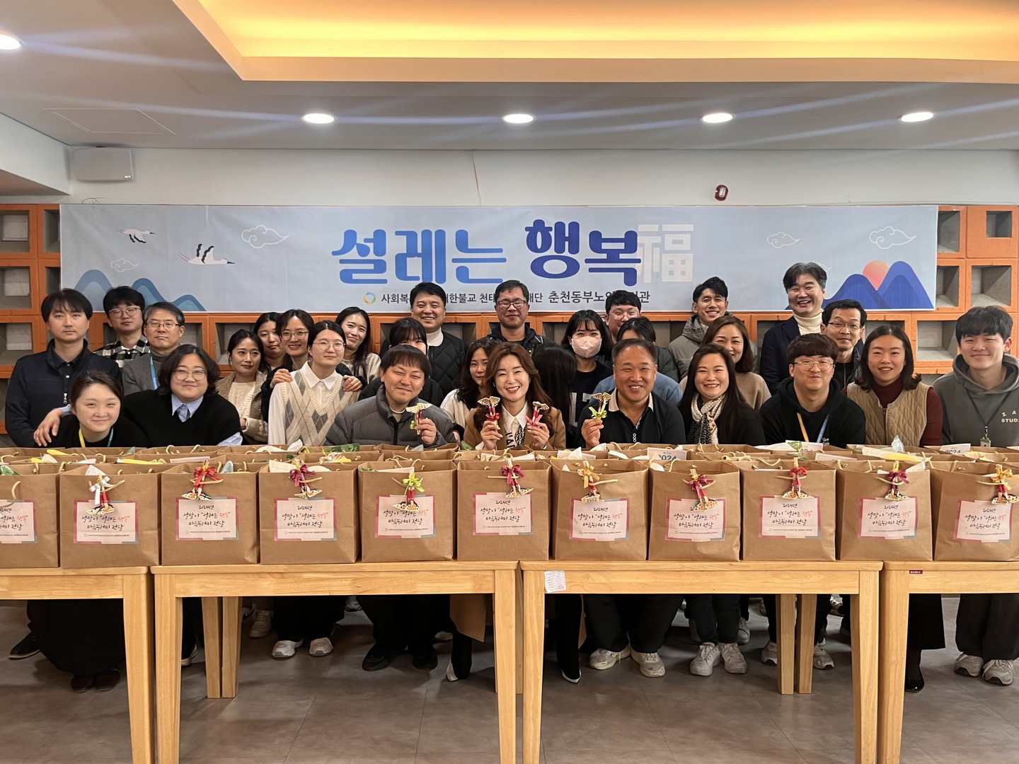 춘천동부노인복지관(관장 종세스님)은 지난 2월 8일 설 명절을 맞이하여 재가 어르신 70명에게 음식 꾸러미를 전달했다. 음식 꾸러미는 모듬전, 떡꾹떡, 사골곰탕, 잡채, 만두 등으로 다양하게 구성됐으며 춘천동부노인복지관 후원이사회 세실로250(회장 홍승진) 이사님들이 어르신 댁을 직접 방문하여 어르신들과 새해 덕담...