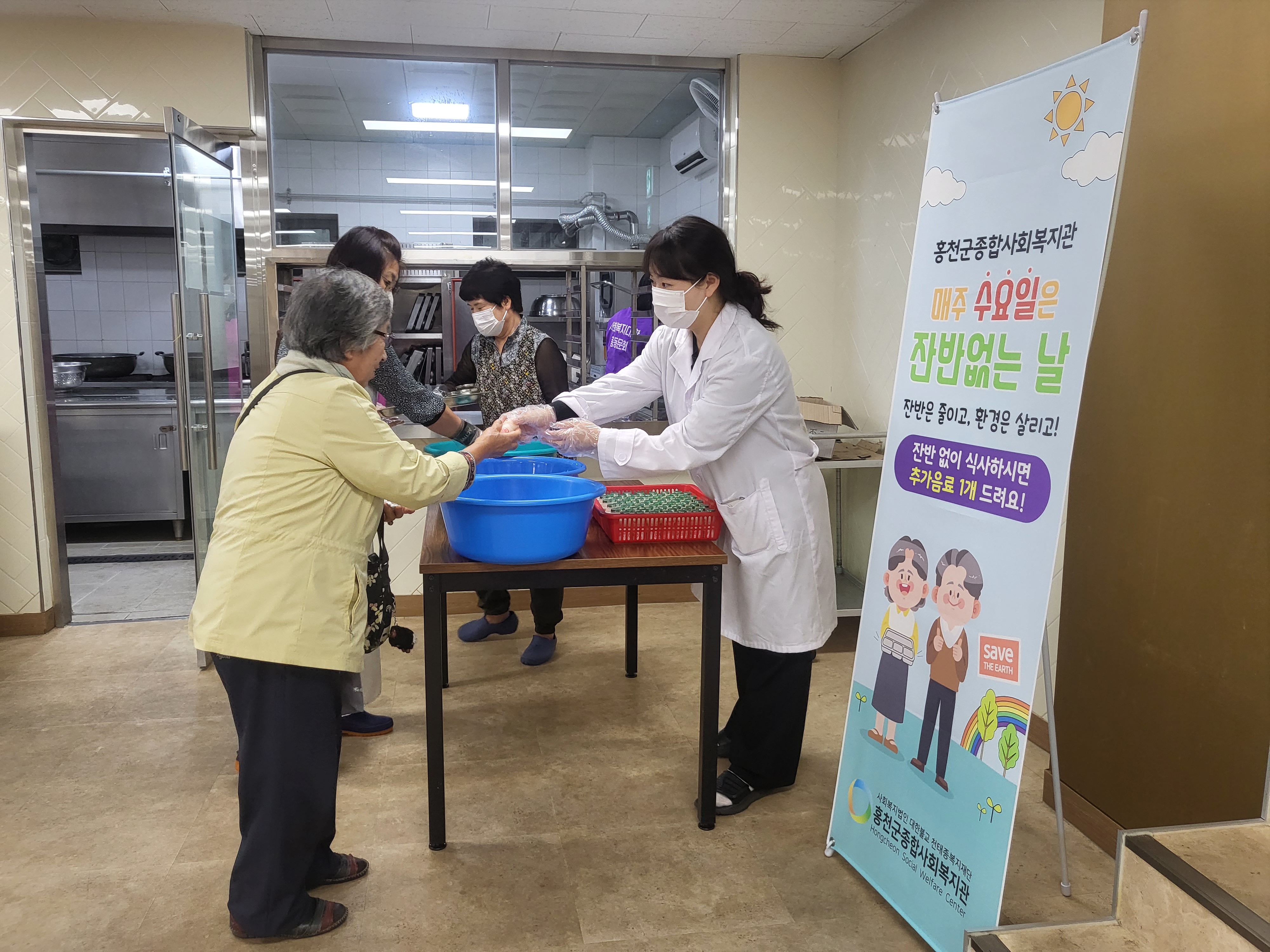 홍천군종합사회복지관(허문순 관장) 경로식당에서는 환경보호 운동과 이용자들의 인식개선을 위한 실천의 일환으로 지난 9월부터 매주 수요일마다 '잔반 없는 날'을 정하여 운영하고 있다. 평소 균형있는 영양소와 양질의 식단 제공으로 잔반을 남기지 않은 이용자들에게 후식음료를 제공하는 것으로 이용자의 동기와 의욕을...