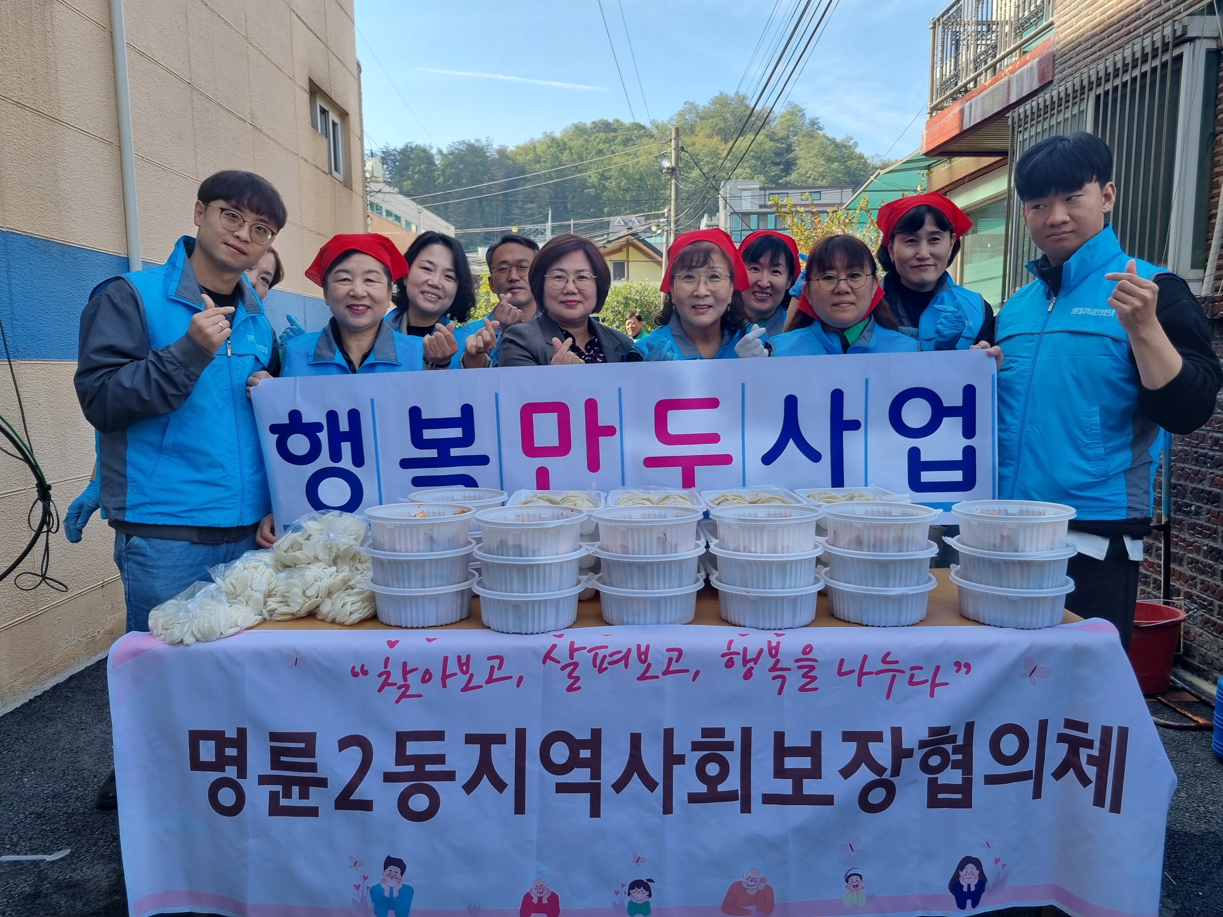 가가호호 특화사업의 일환으로 독거어르신 50가구에 만두 전달 원주시 명륜2동 지역사회보장협의체(공공위원장 백승희, 민간위원장 권영숙)는 지난 10월 18일 관내 저소득 독거노인 50가구에 직접 빚은 만두를 전달하였다. 이번 행사는 올해 원주시 지역사회보장협의체에서 주관한 '가가호호 특화사업'의 일환으로 실시하였으...