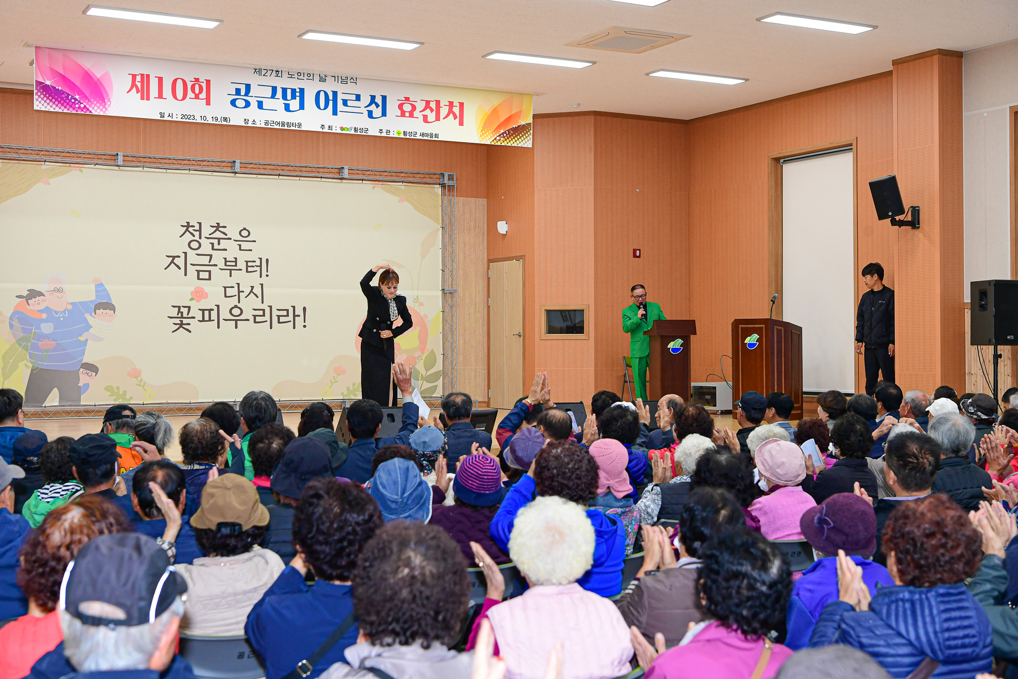 횡성군새마을회(회장 김은영)는 지난 10월 19일 공근어울림타운에서 '제10회 공근면 어르신 효잔치'를 개최했다. 행사에는 김명기 군수와 전성택 횡성군노인회장을 비롯한 많은 내빈이 참석하였으며, 기념식과 각종 공연을 진행한 후 참석한 650여 명의 어르신들께 따뜻한 점심 식사를 대접했다. 이날 행사에는 공근면의 새마...