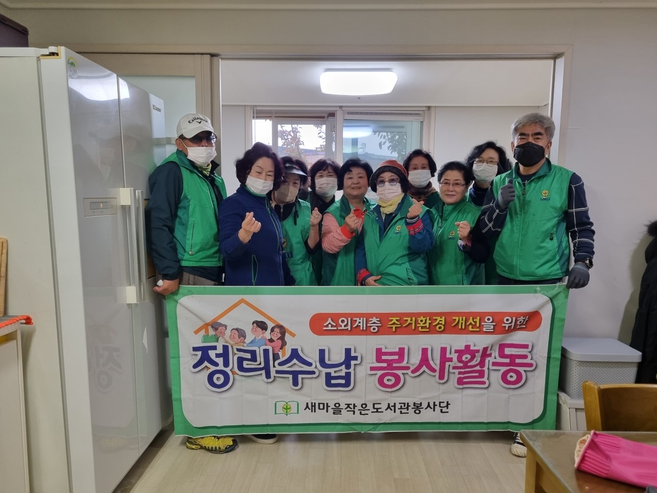 새마을문고중앙회 춘천시지부(회장: 이희순)의 새마을작은도서관봉사단은 지난 10월 19일 춘천시 신사우동 관내 주거환경 개선이 필요한 저소득 독거노인 가구를 방문해 정리수납 봉사를 했다.