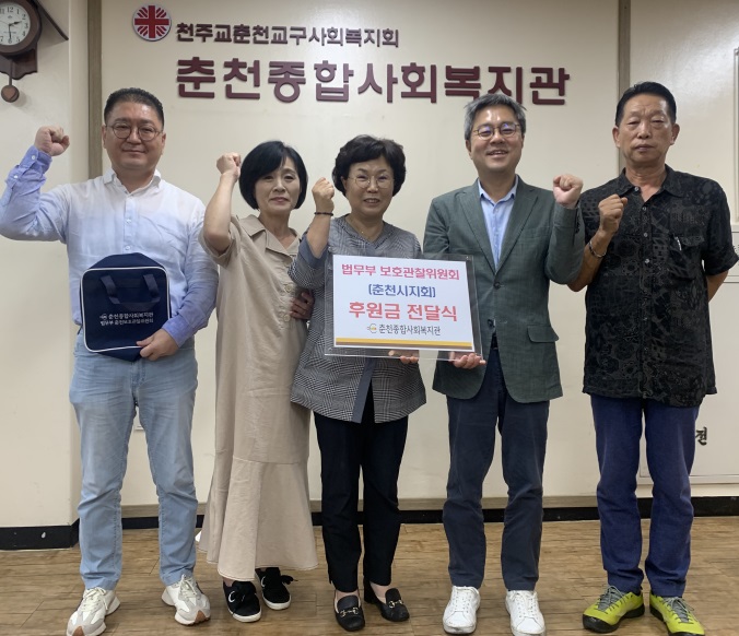 [강원사회복지신문 서은진 기자]=법무부 춘천보호관찰위원회는 지난 9월 13일(수) 춘천종합사회복지관에서 지역사회복지증진을 위한 후원금 전달식을 진행하였다. 이번 후원금은 지역 내 거동이 불편한 저소득 어르신을 위한 도시락 배달을 위해 사용될 예정이다.