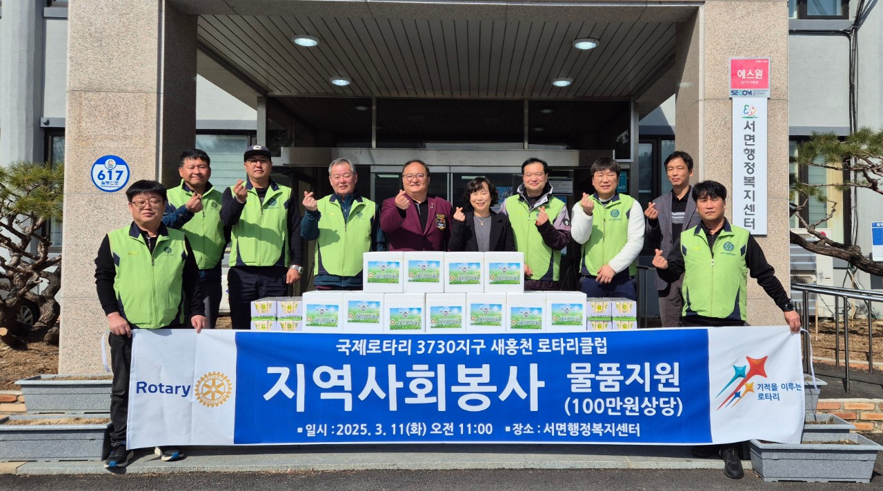 새홍천로타리클럽(회장 지연홍)은 3월 11일 홍천군 서면행정복지센터에 방문하여 독거노인을 위해 100만 원 상당의 건강 먹거리를 기탁했다. 이번 후원은 어르신들의 균형 잡힌 한 끼 음식을 제공해 드리기 위해 삼계탕, 사골곰탕, 두유로 구성된 건강 먹거리 25세트(100만 원 상당)를 기탁했으며 홀로 거주하는 어르신들에게...