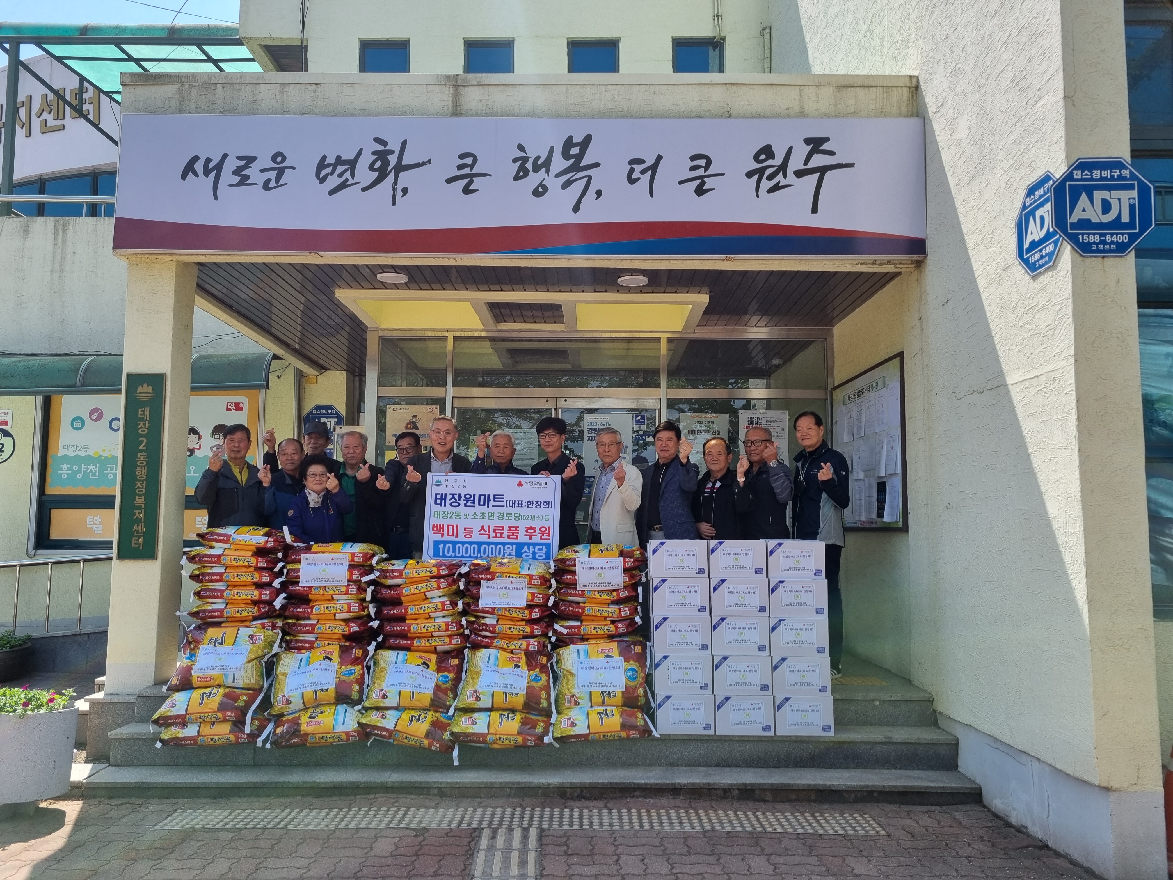 [강원사회복지신문 김도연 기자]=향토기업인 (주)남원 원마트 태장점(대표 한창희)은 어버이날을 맞아 태장2동(26개소)과 소초면 경로당(26개소) 52개소와 밥상공동체종합사회복지관, 원주시 사회복지협의회에 1천여만 원 상당의 백미와 주류를 전달했다. 한창희 대표는 "올해도 어버이날을 맞아 지역 어르신들과 어려운 이웃...