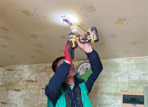 [강원사회복지신문 이정환 기자]=김명수(55세) 대화면새마을지도자협의회장은 지난 4월 18일 평창군 대화면 관내 홀몸 어르신 2가구를 대상으로 노후화된 전등을 LED 등으로 교체하는 재능기부 봉사활동을 실시하였다.