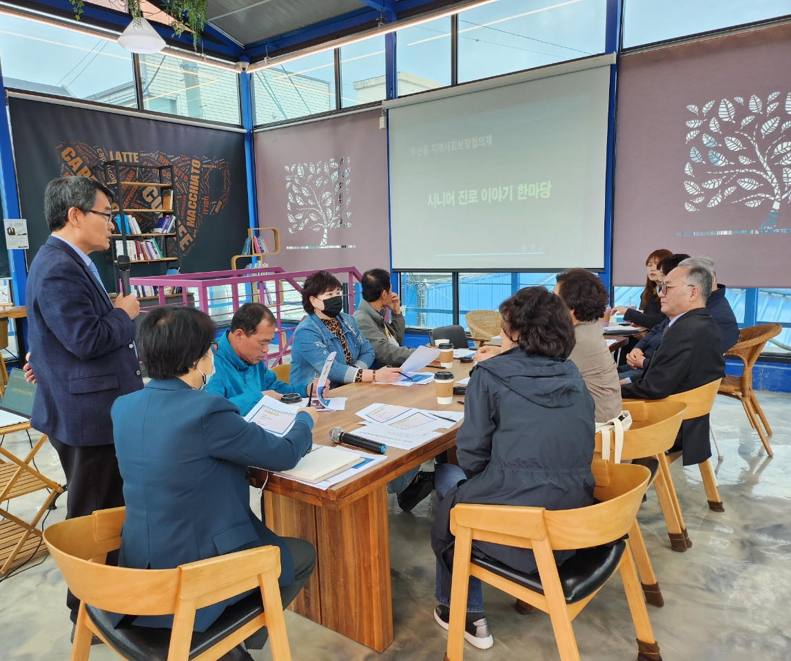 [강원사회복지신문 김도연 기자]=우산동 지역사회보장협의체(공공위원장 박정희, 민간위원장 최인환)는 지난 4월 25일 '시니어 진로 이야기 한마당' 교육을 실시했다. 이날 교육에는 임영규 (사)전국독서새물결모임회장이 강사로 나서 고령화 시대에 시니어를 준비하는 우리들에게 인식의 전환, 자존감 증가, 인문학 고전 읽...