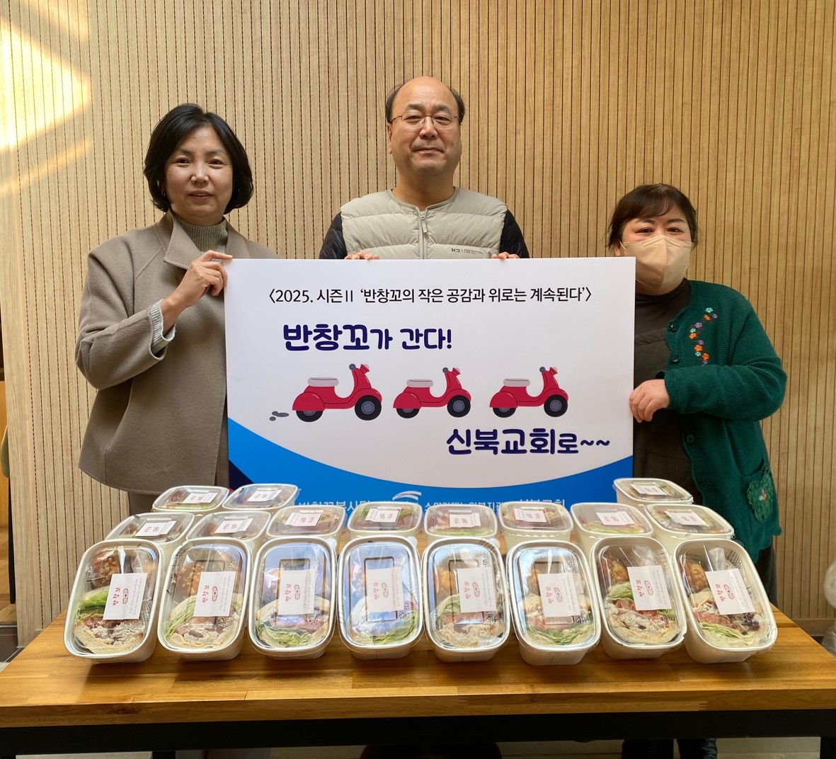 반창꼬 봉사단(대표 권강현)은 2월 19일(수)에 K-water나눔복지재단 소양강댐노인복지관(관장 허미숙)의 추천으로 봉사단원이 직접 만든 샌드위치를 신북교회(담임목사 이창봉) 봉사단체에게로 전달하였다.