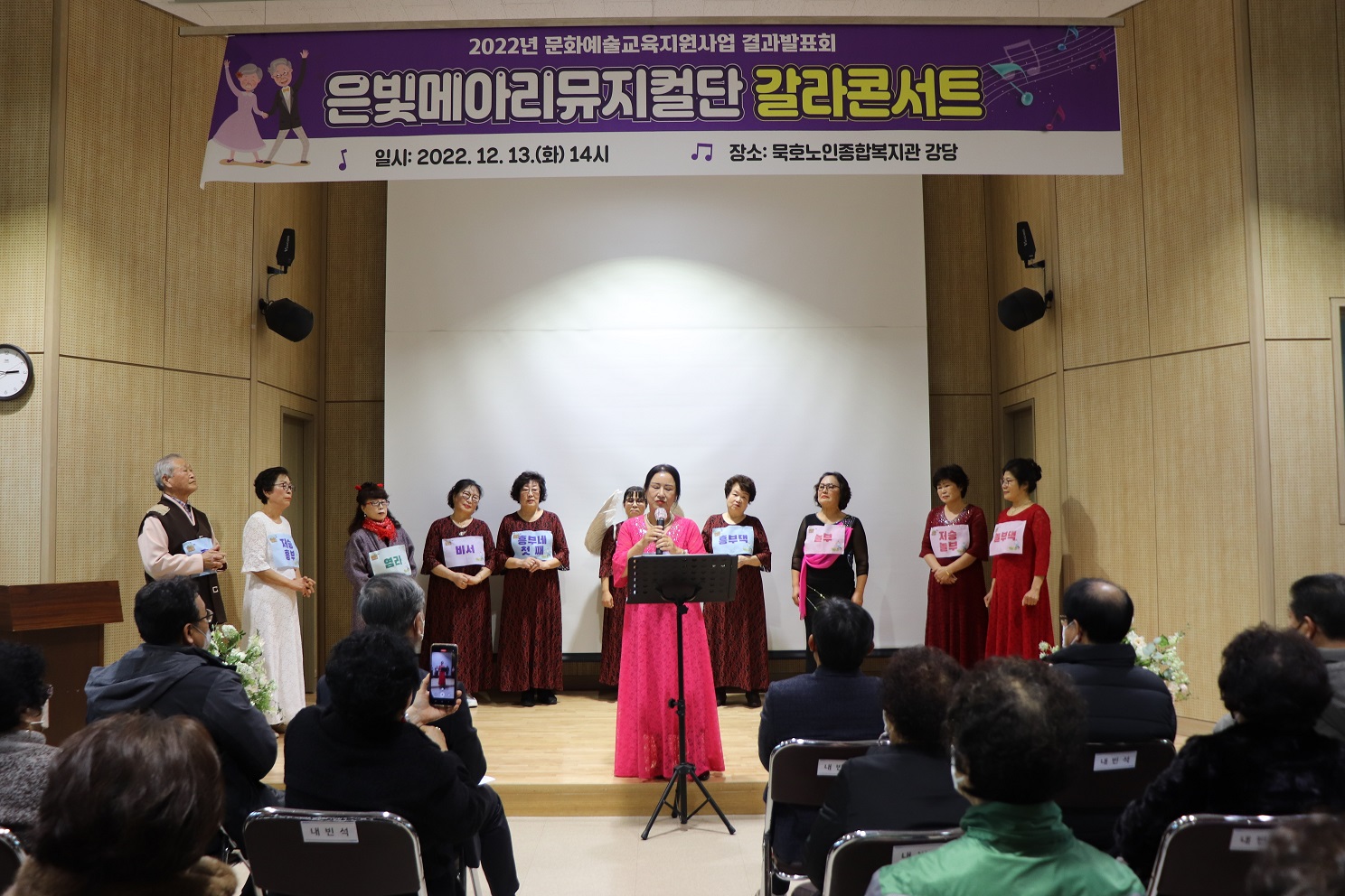 [강원사회복지신문 홍기한 기자]='은빛메아리뮤지컬단 갈라콘서트' 실시 동해 묵호노인종합복지관(관장 염규성)이 2022년 문화예술교육지원사업 결과발표회 '은빛메아리뮤지컬단 갈라콘서트'를 2022년 12월 13일(화) 14시 복지관 강당에서 실시했다. 문화예술교육지원사업은 2011년부터 한국노인종합복지관협회가 한국문화예...