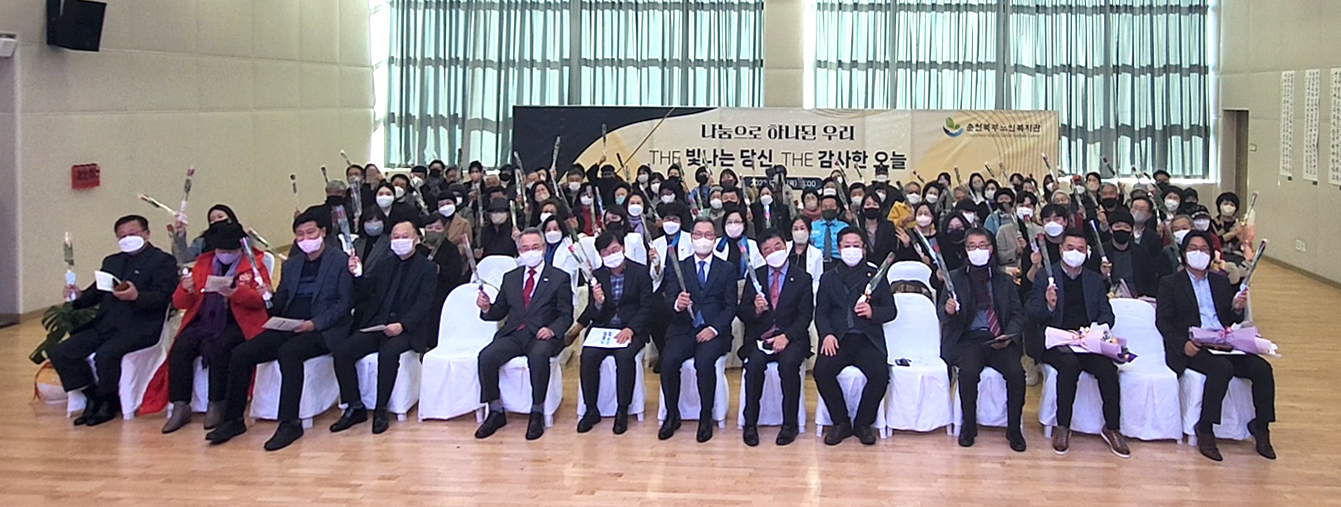 [강원사회복지신문 김도연 기자]=춘천북부노인복지관(관장 박재호)이 주최하는 '2022년 춘천북부노인복지관 사업보고 및 후원·자원봉사자 감사의 날 'The 빛나는 당신, The 감사한 오늘'이 지난 12월 8일 춘천북부노인복지관에서 개최되었다. 이번 행사는 2022년 한 해 동안 춘천북부노인복지관을 통해 나눔을 실천한 자원봉...