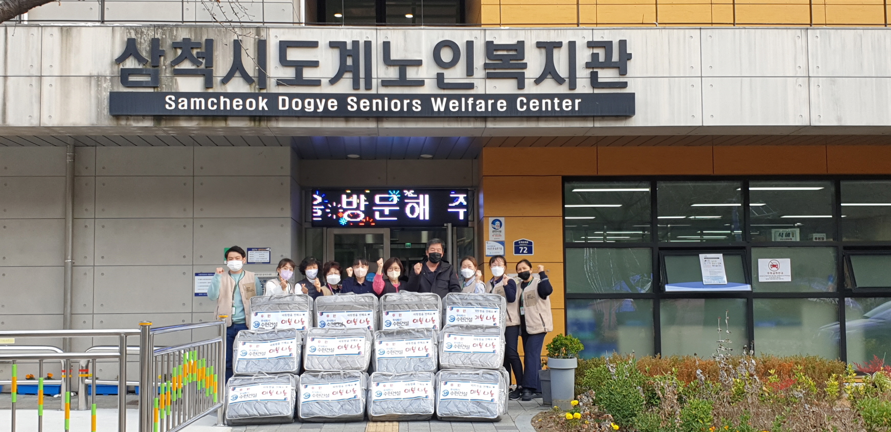 [강원사회복지신문 이정환 기자]=삼척시도계노인복지관(관장 정미정)는 지난 11월 22일 (주)수현건설(대표 구도회)로부터 250만 원 상당의 이불(패드)을 후원받았다. 이불은 지역의 취약 어르신들이 올겨울 따뜻하게 지낼 수 있도록 조금이라도 보탬이 되고자 전달되었으며, (주)수현건설 구도회 대표는 "지역 업체들의 작은...