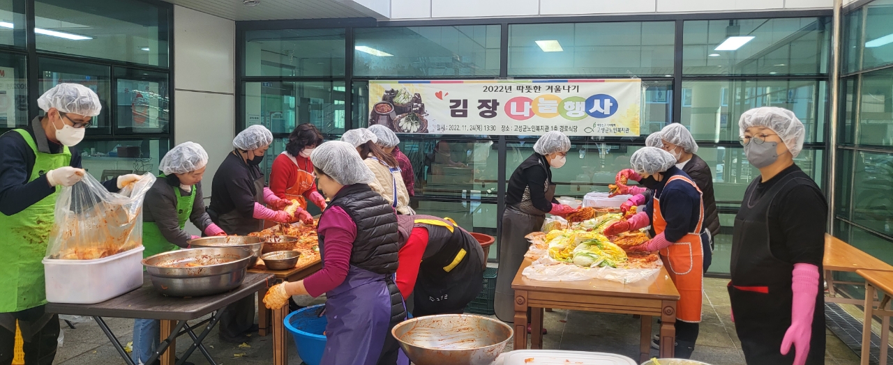 [강원사회복지신문 서은진 기자]=고성군노인복지관에서는 지난 11월 24일 독거 어르신을 위한 '따뜻한 겨울나기 김장나눔행사'를 열어 훈훈한 온정을 나눴다. 이날 행사에는 자원봉사자 10여명이 모여 김치를 담그고 포장하는 봉사활동에 참여하였다. 올해 준비한 김장은 240포기로, 김장 준비에 경제적 부담을 느끼는 지역 ...