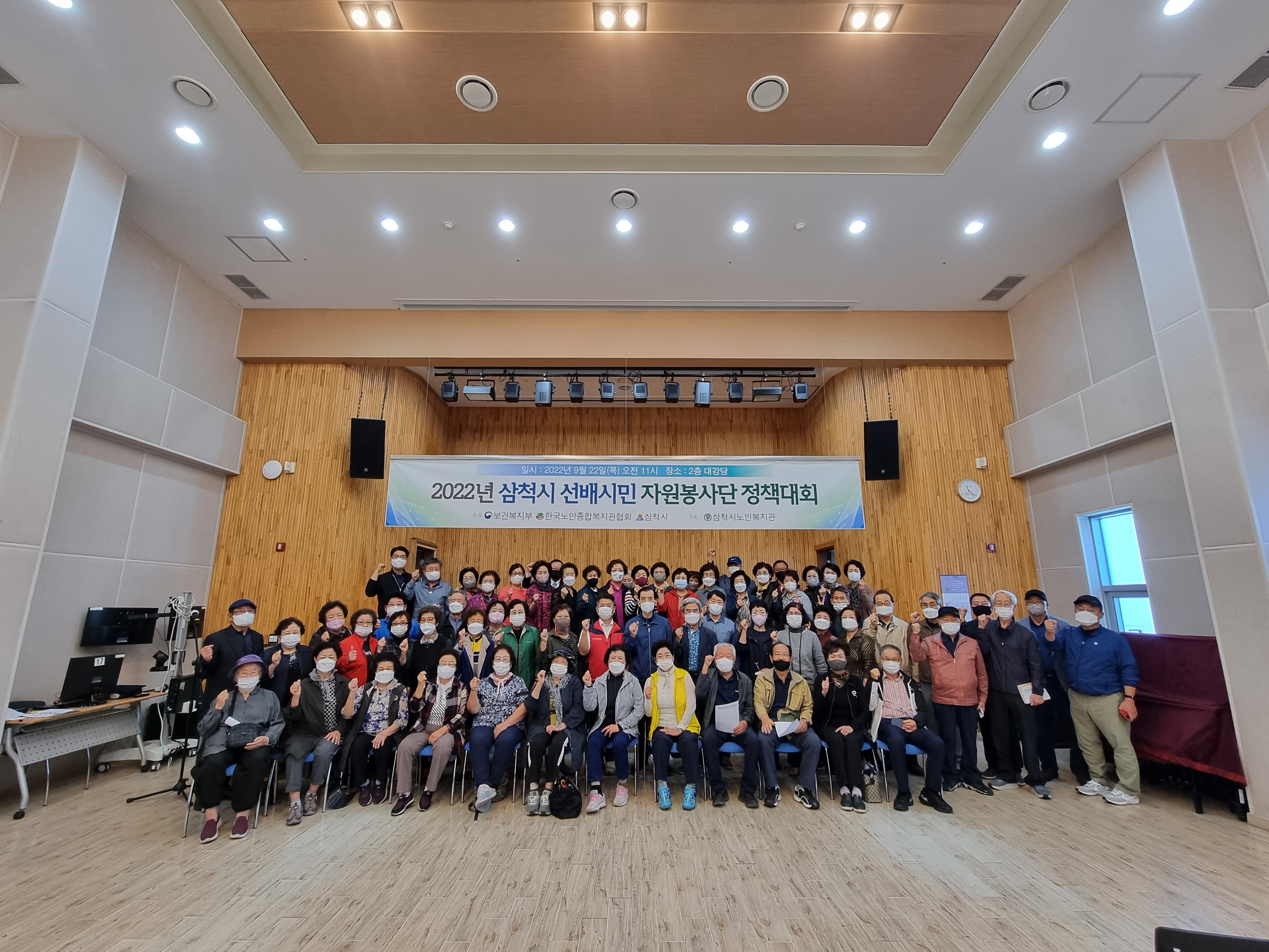 [강원사회복지신문 홍기한 기자]=삼척시노인복지관에서는 지난 9월 22일 오전 11시 2층 대강당에서 선배시민 자원봉사단 70명이 참석하여 선배시민 자원봉사단 정책대회를 개최하였다. 이번 삼척시노인복지관 선배시민 정책대회는 자원봉사자 70명이 모여 선배시민 선언문 낭독과 정책발표를 통해서 대표정책을으로 '어르신 ...