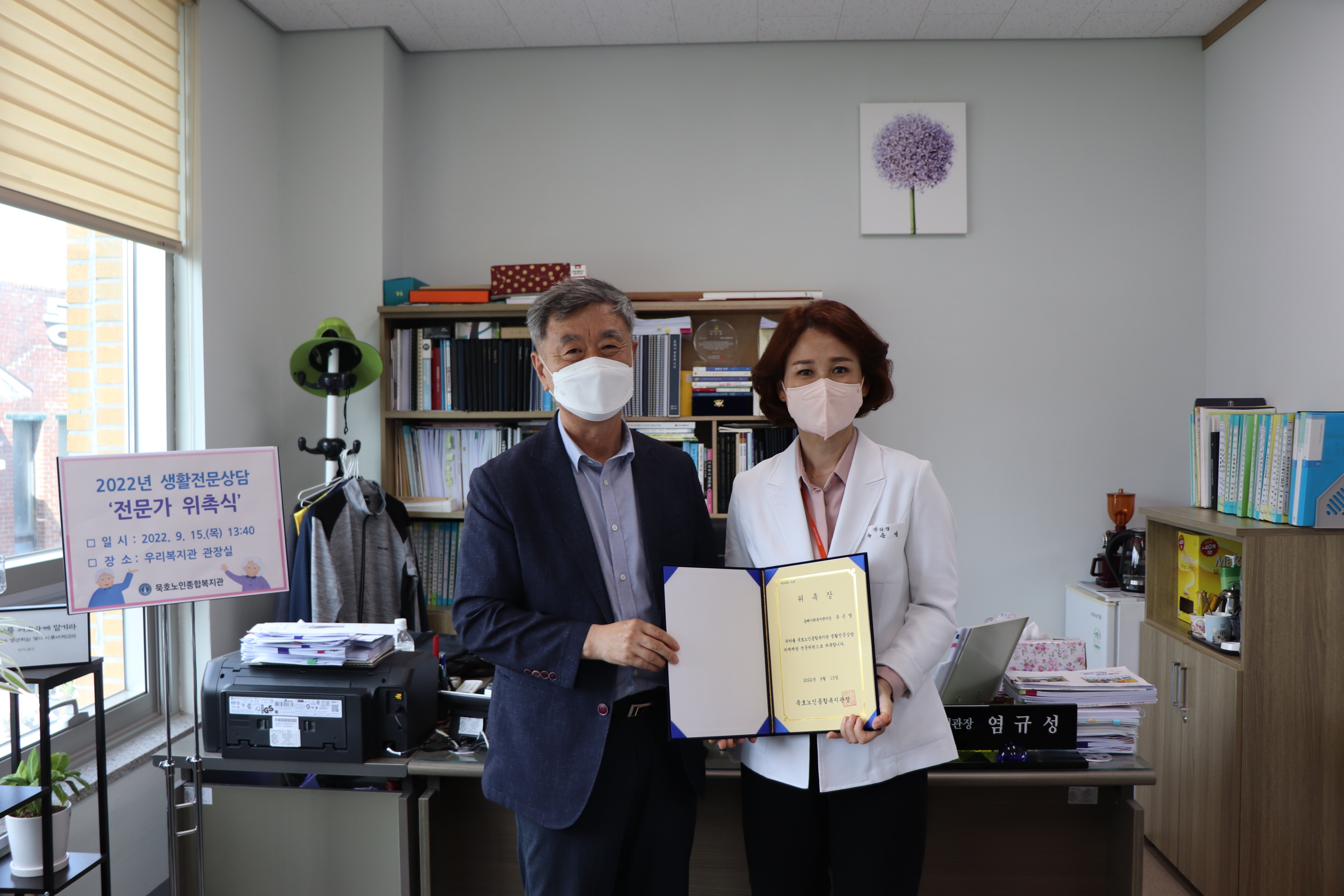 [강원사회복지신문 이정환 기자]=동해 묵호노인종합복지관(관장 염규성)은 지난 9월 15일(목) 2022년 치매예방 생활상담 전문위원을 위촉하고 상담을 실시하였다. 현대사회는 고령화 사회로 진입했으며, 노인 인구수가 증가함에 따라 치매 발병 비율 역시 늘어나고 있다. 국내 치매 발병율은 2009년 8.4%였으며, 연령은 5년 ...